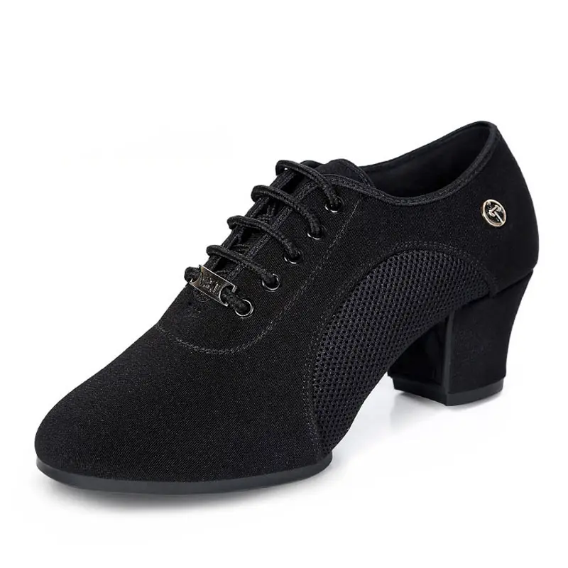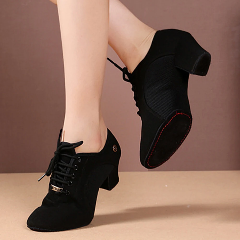 Women's Latin Ballroom Tango Dance Shoes Oxford Cloth Upper 5cm Heel Suede Outsole Black Practice Shoes