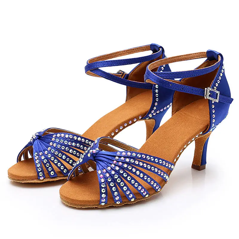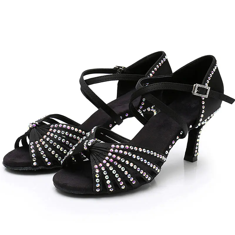 Wholesale Women's Fashion Latin Ballroom Tango Dance Shoes with Rhinestones Soft Bottom 5/7cm Heels
