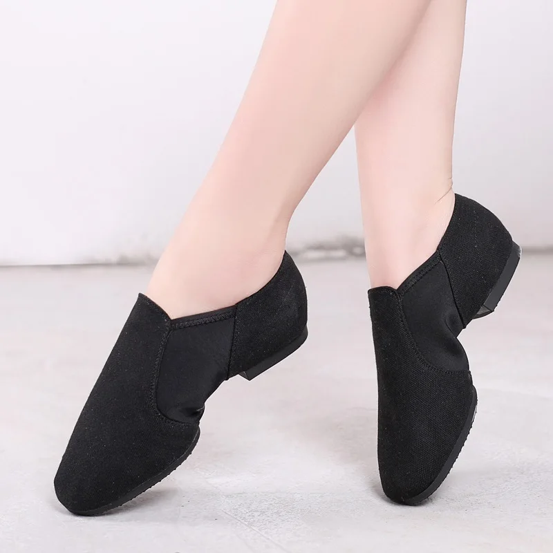 Ladies Canvas Low-Heeled Latin Dance Shoes Oxford Outsole Soft and Comfortable Adult Outdoor Square Ballroom Dancing Shoes