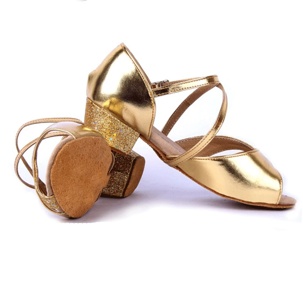 Girls' Comfortable Low-Heeled Soft-Soled Leather Outsole Salsa and Latin Dance Shoes for Children's Indoor Stage Performance