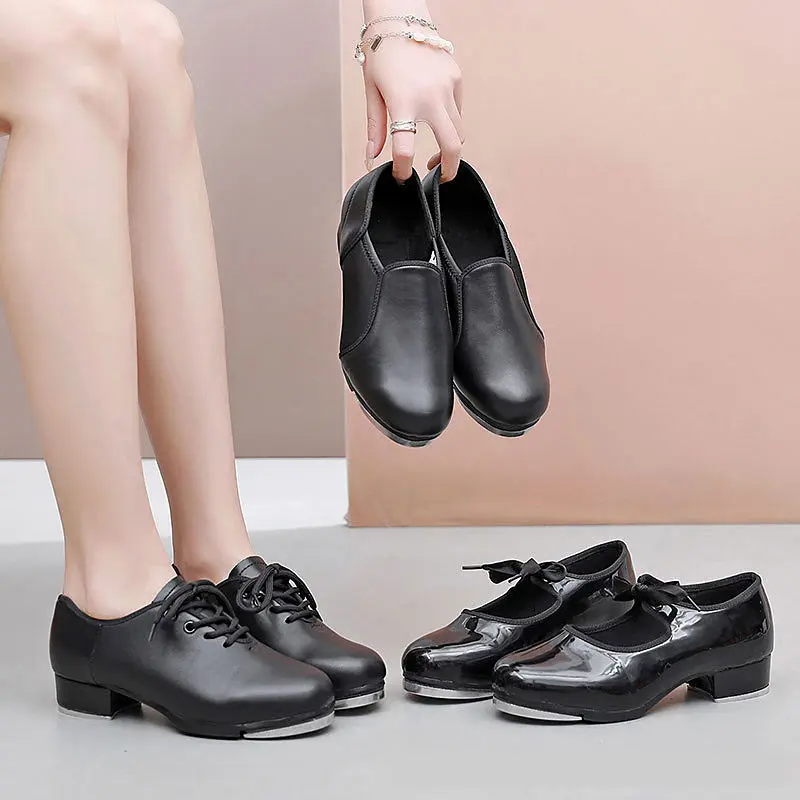 High Quality Men Women Adult Kids Tap Dance Shoes Cotton Lining Rubber Outsole Black Wholesale