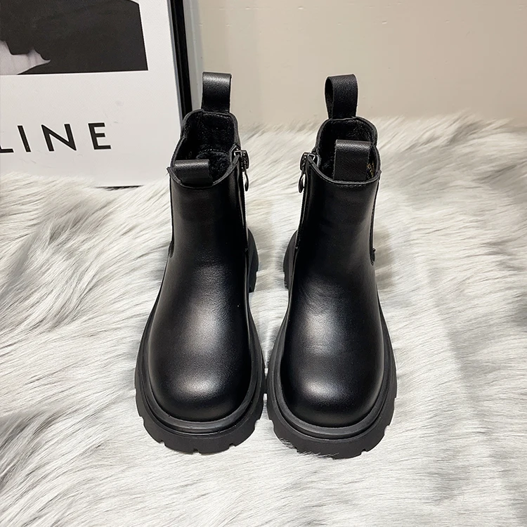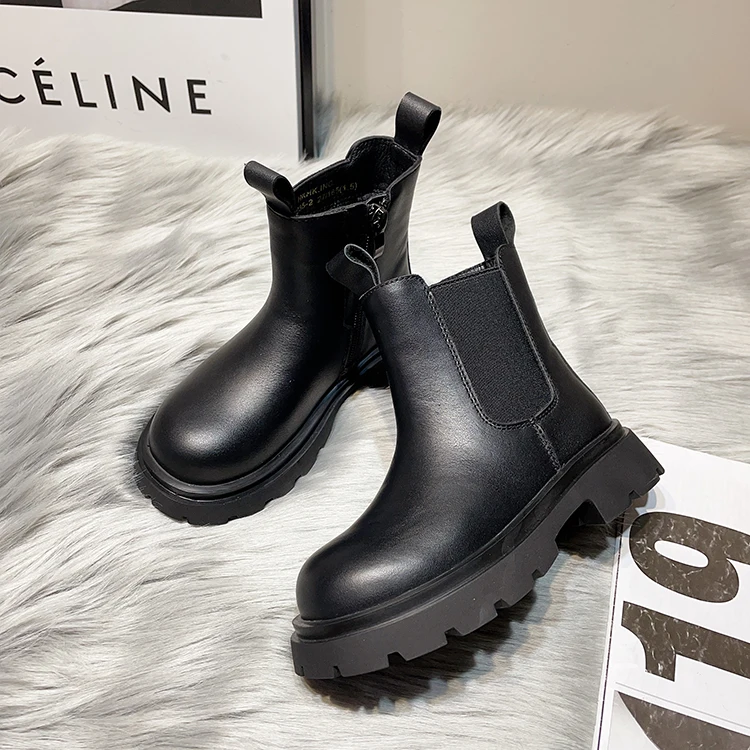 Girls' British Style Mid-Calf for Boots 2026 Autumn Fashionable Chimney Short Artificial Leather Side Zipper Rubber Outsole