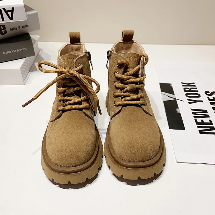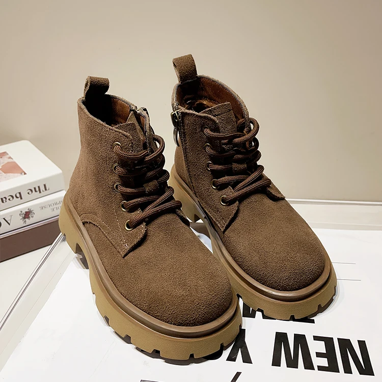 Girls' British Style Mid-Calf for Boots 2026 Autumn Fashionable Chimney Short Artificial Leather Side Zipper Rubber Outsole