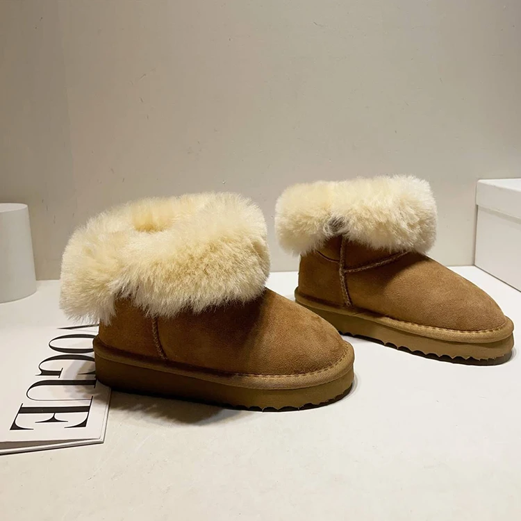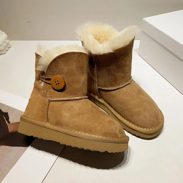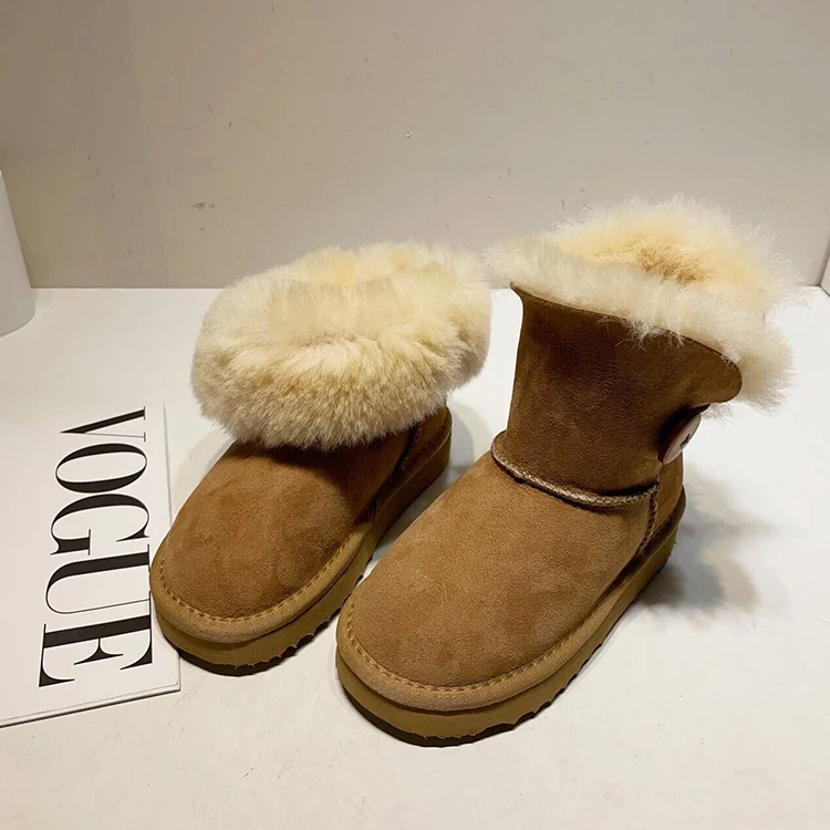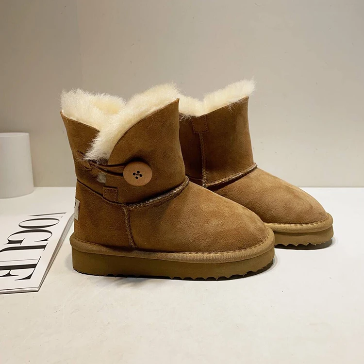Fashionable Mid-Tube Girls Soft Indoor Outdoor Fluffy Sheepskin Women Waterproof Ankle Children Snow Boots for Men