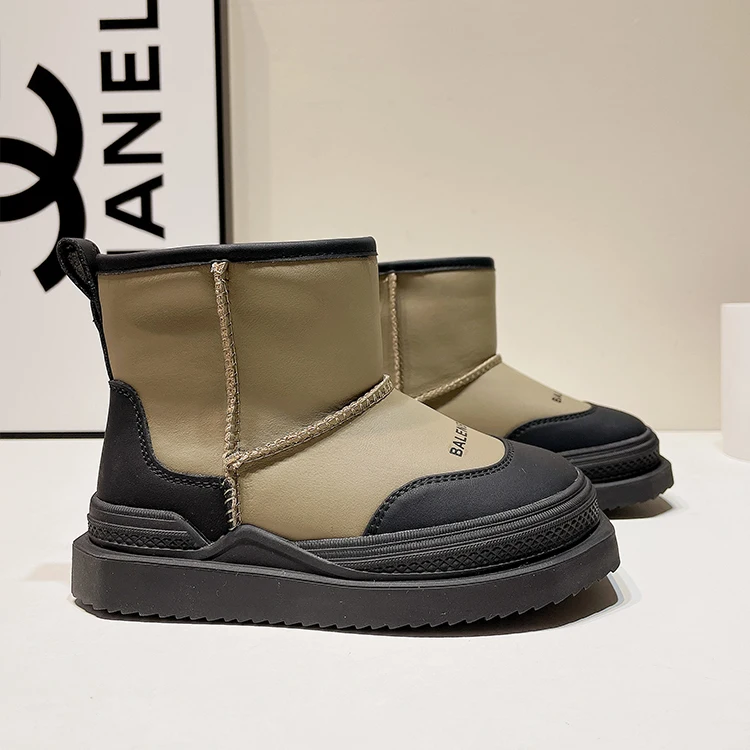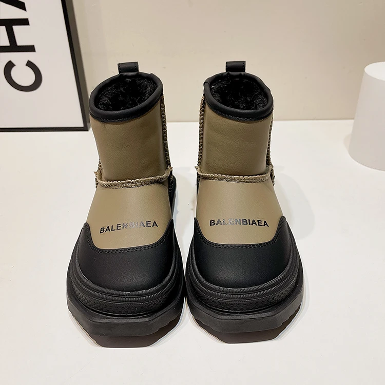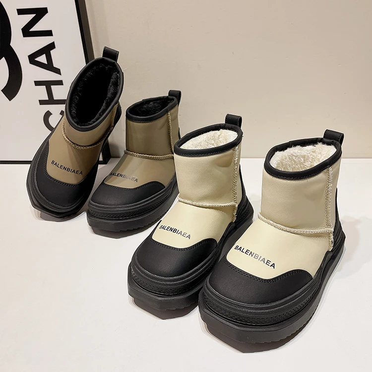 European Design Anti Slip Waterproof Plush Warm Boys Girls Thick Sole Furry Boots Cotton Shoes Platform Snow Boots