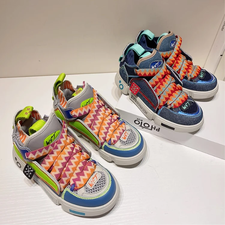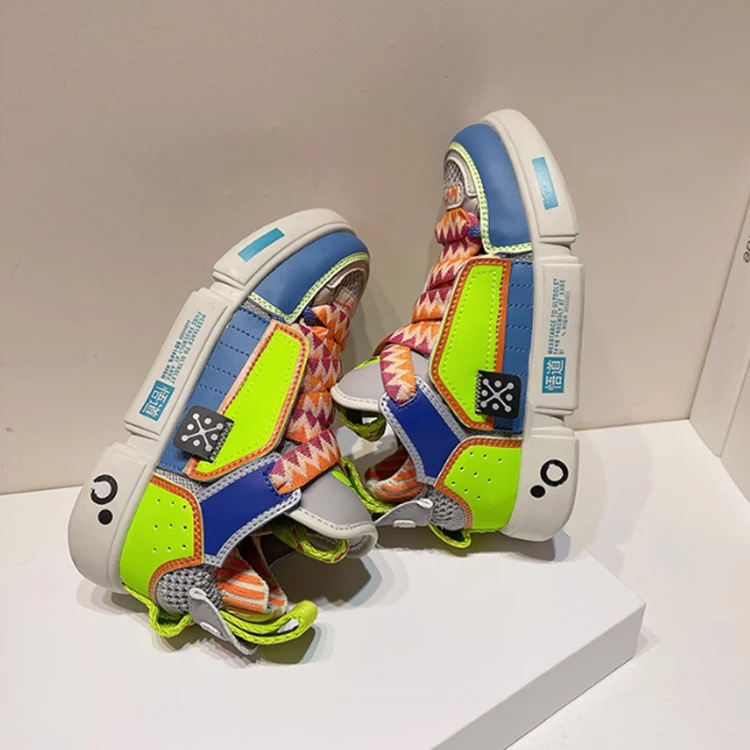 Multi-color Kids Custom Skateboarding Wear-resistant Autumn Winter Color Matching Running Lace up Shoes Sneakers for Men
