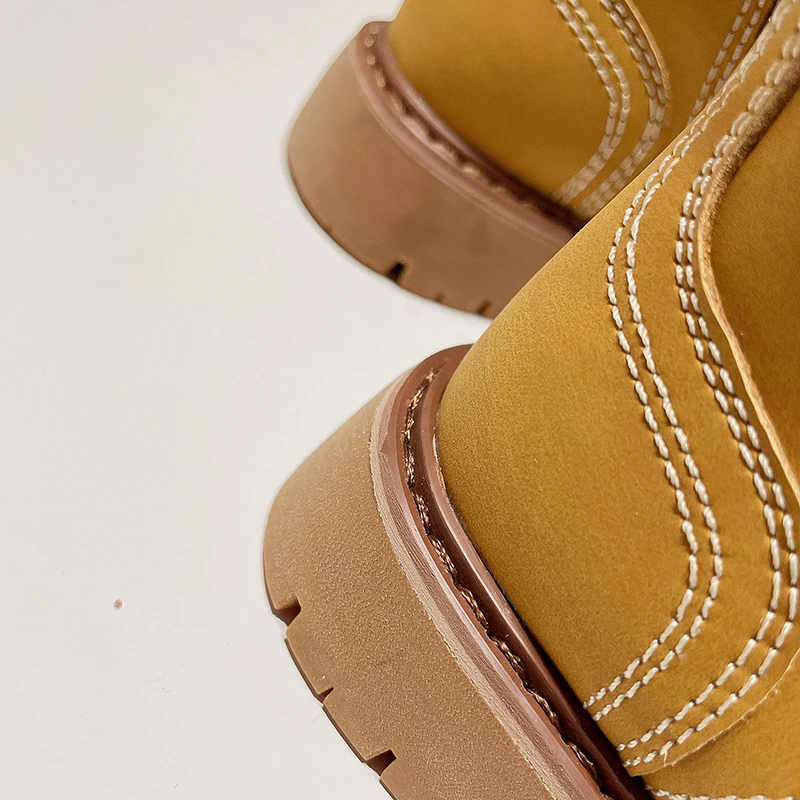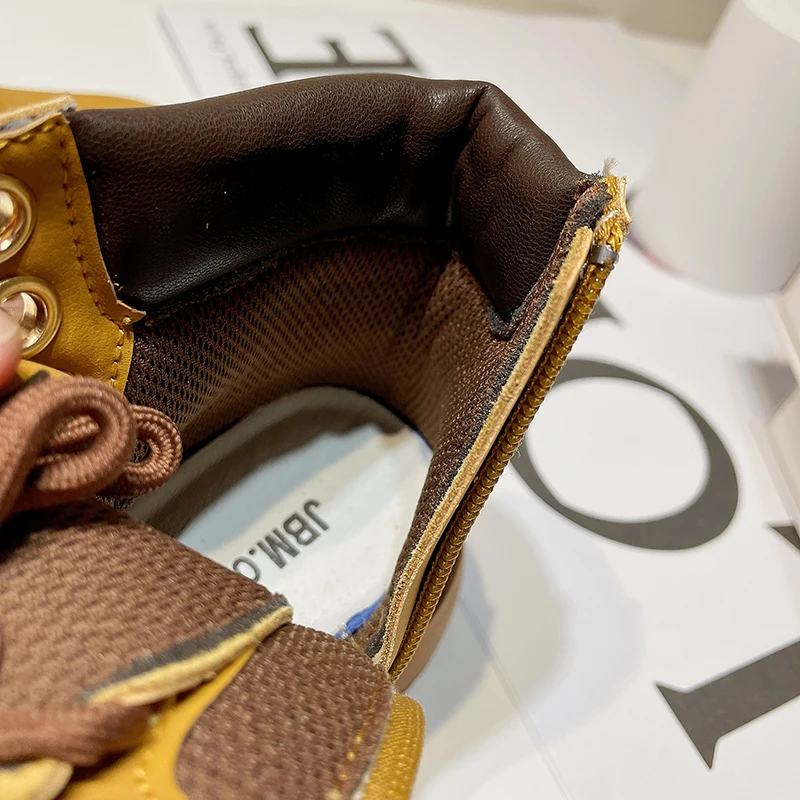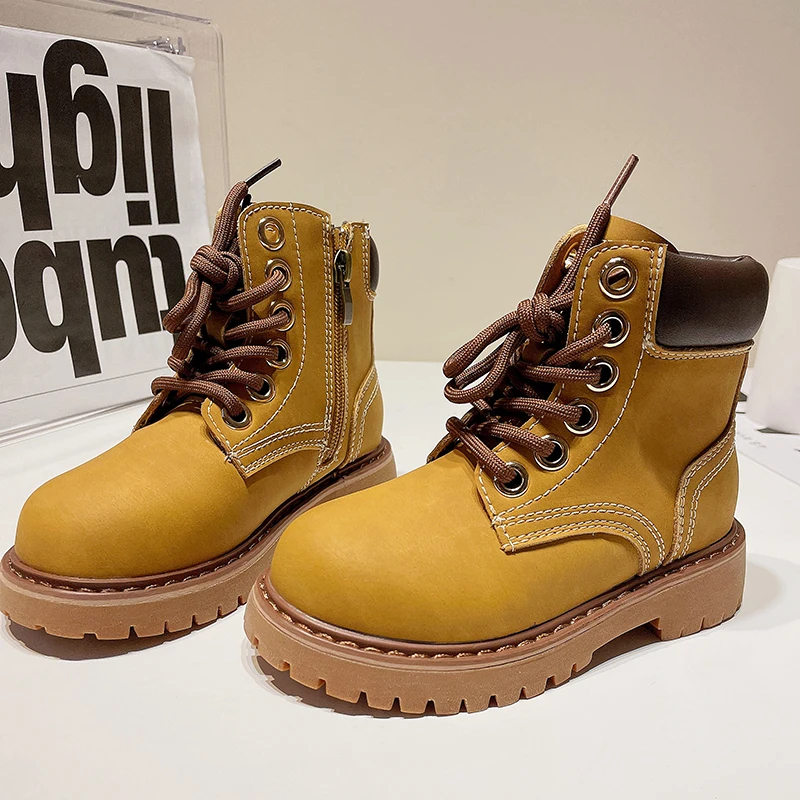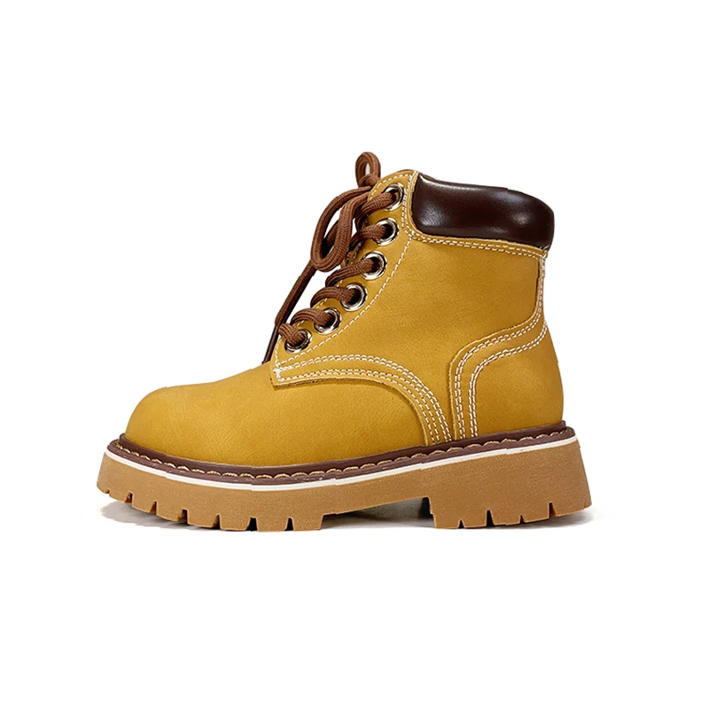 Factory Hot Sales Yellow Mid-High Top Casual Shoes British Style Short Kid Boots Genuine Leather Girls Shoes