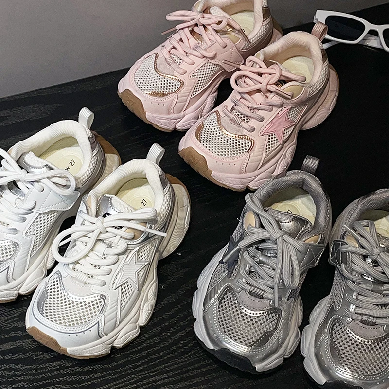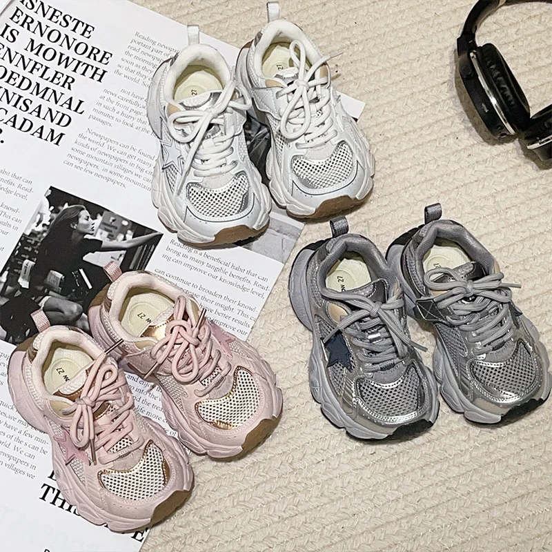 TBS New 2026 Trendy Spring Children's Mesh Non-slip Sports Shoes Breathable Retro Chunky Shoes for Boys and Girls