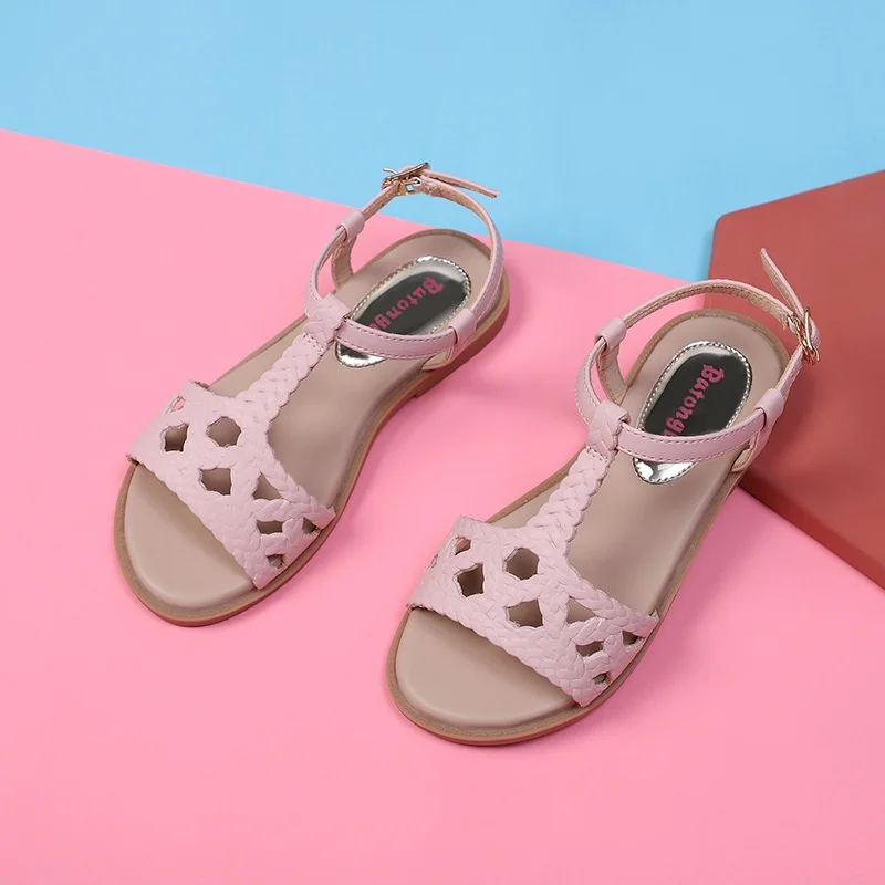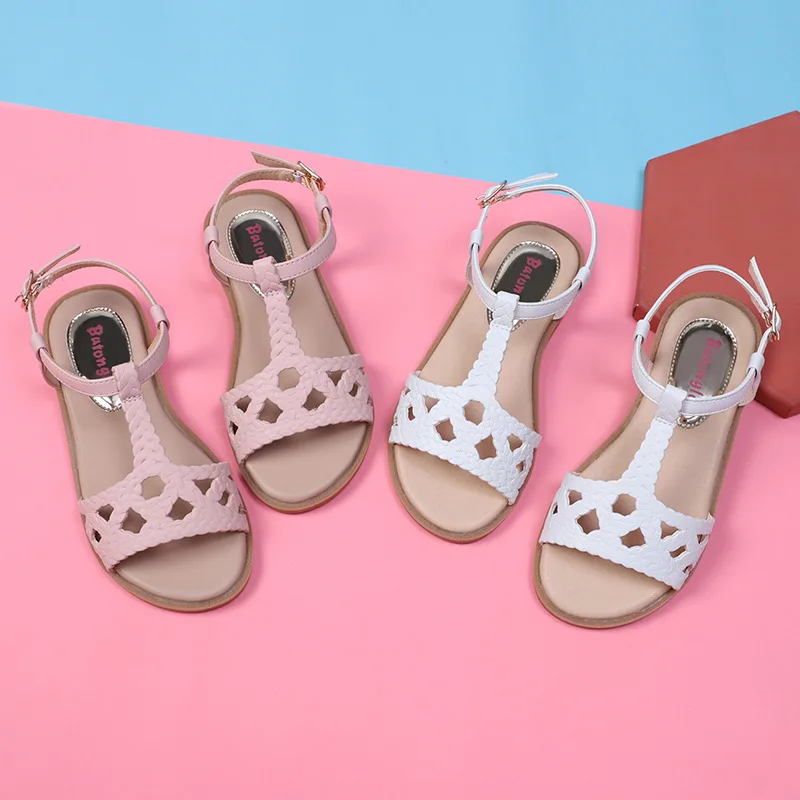 2026 New Korean Style Flat Summer Girls' Sandals Buckle Strap Closure Breathable Beach Shoes for Kids