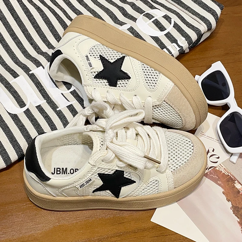 TBS Korean Style Single Mesh Sneakers Spring New Style Breathable Casual White Shoes for Boys and Girls