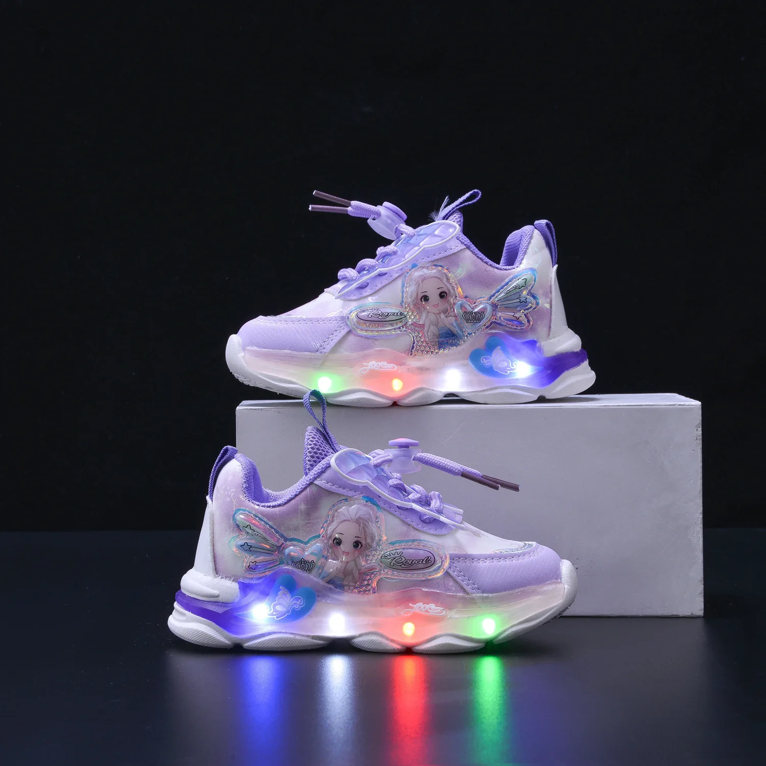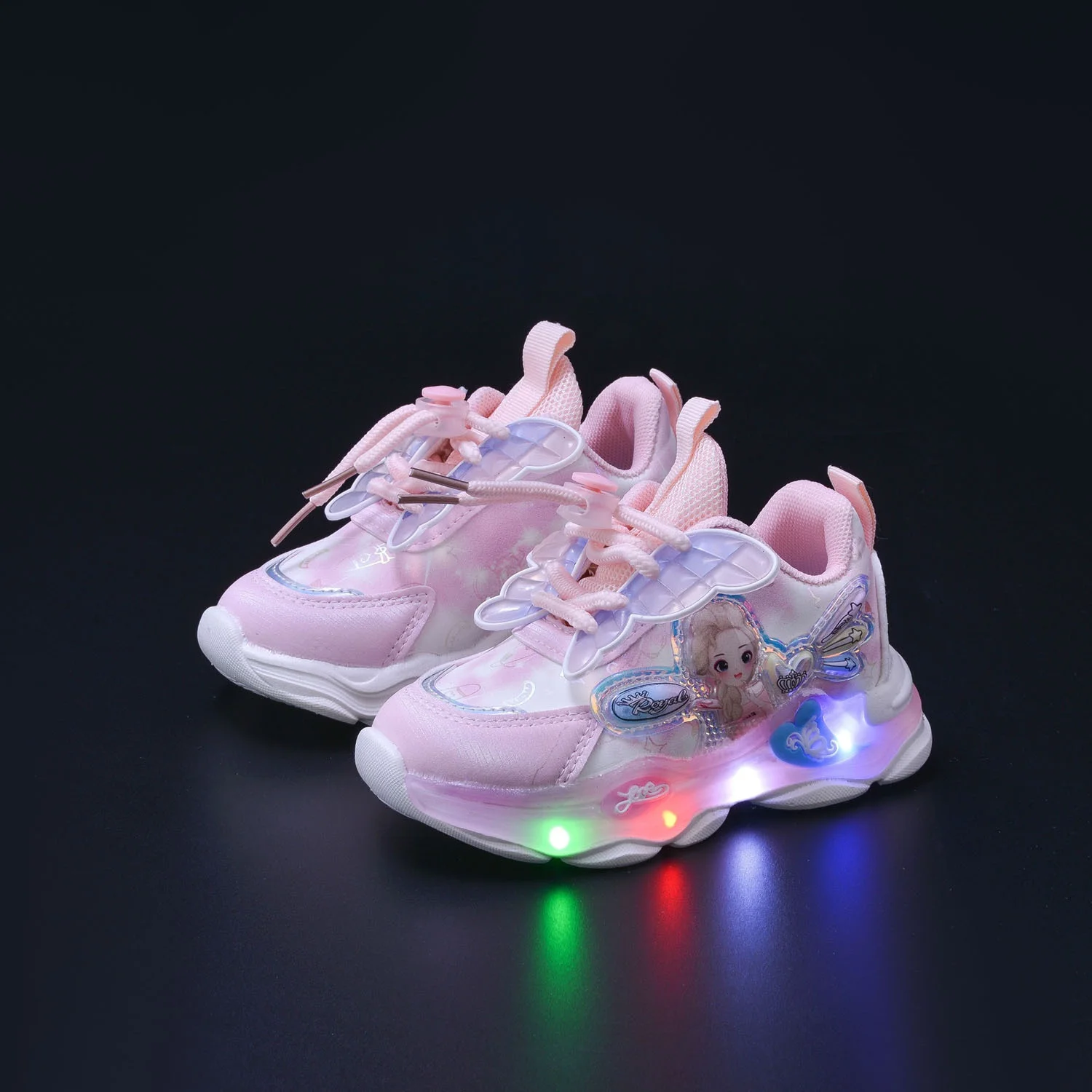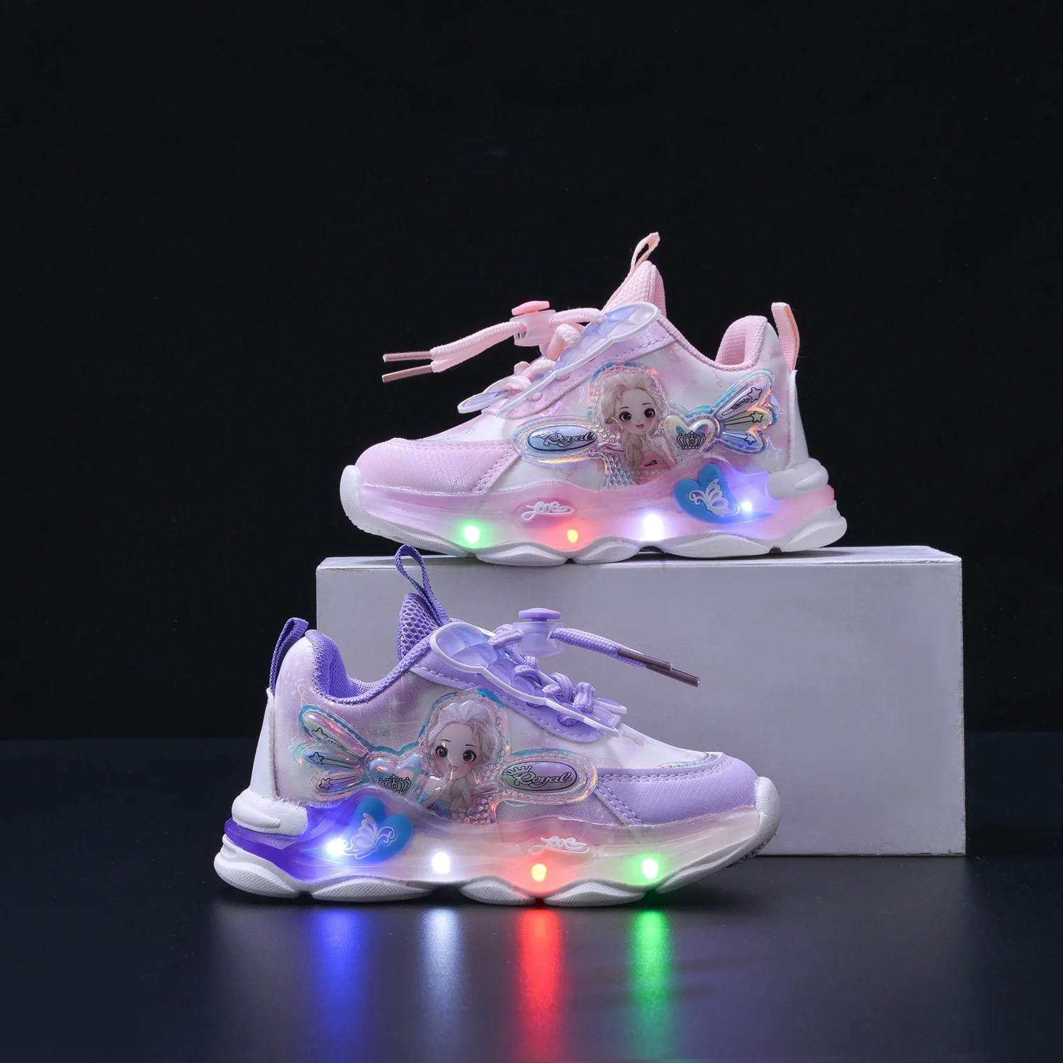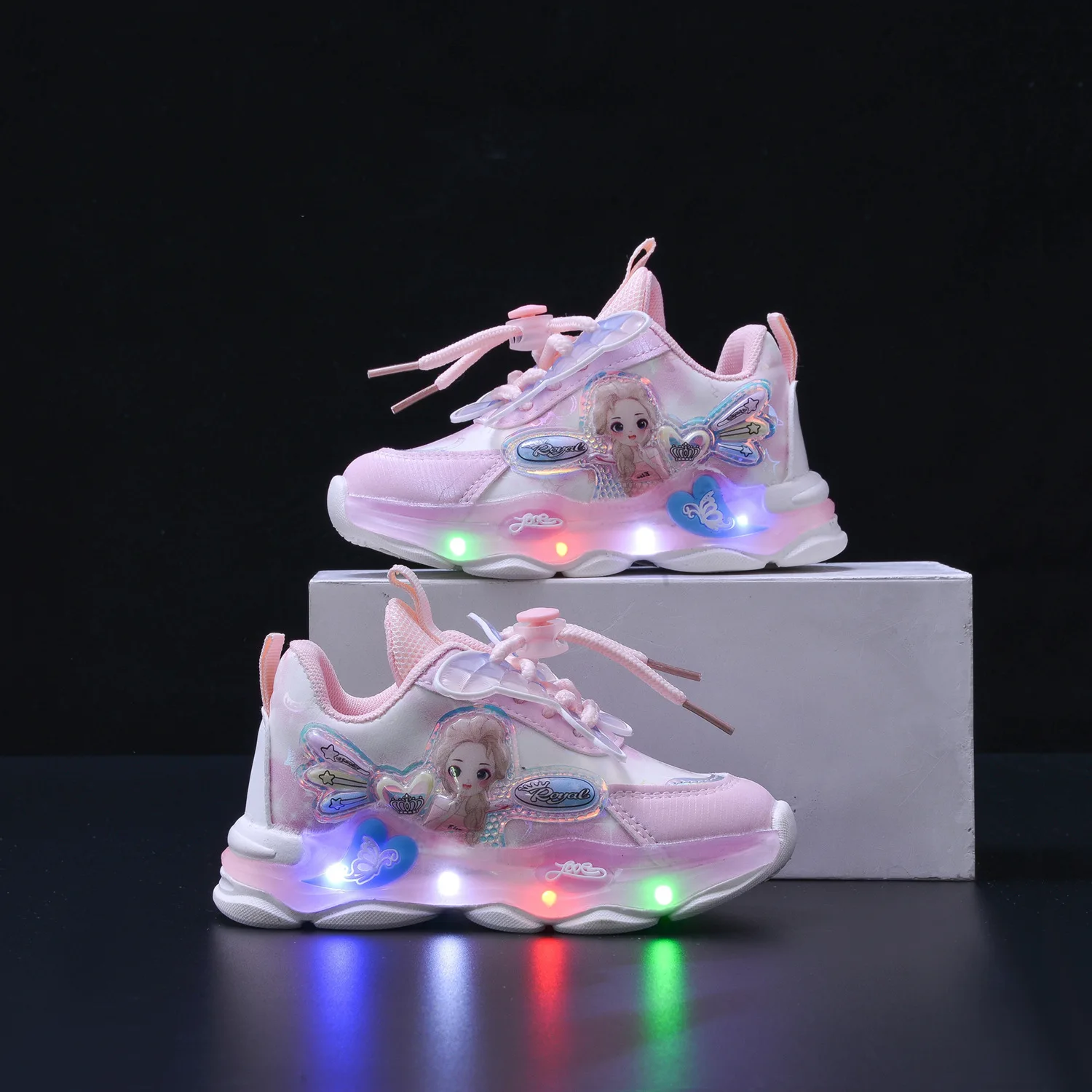2026 Spring New Fashion LED Light Girls' Sneakers Bow Princess Design Toddlers Young Girls Sports Shoes