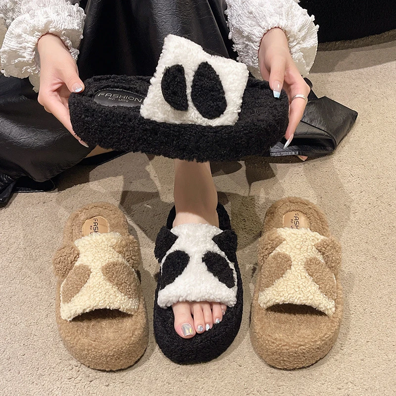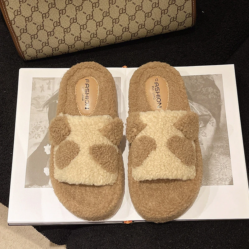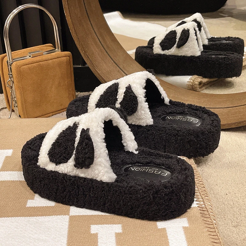 Thick-Soled Casual Fluffy Fashion Slippers for Women Comfortable Indoor Shoes Soft Slippers