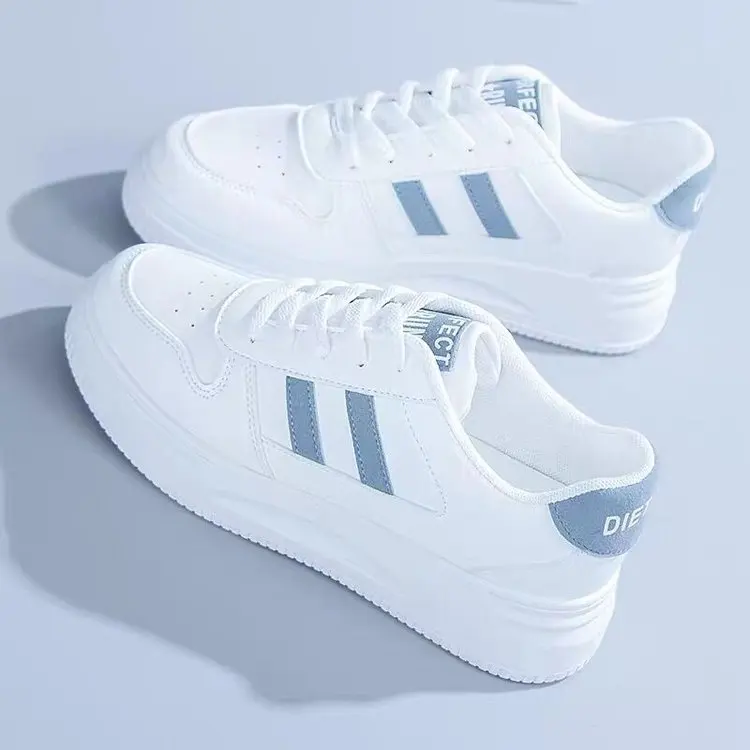 2026 Popular Lady White Pu Leather Chunky Walking Style Sneakers Tennis Footwear Women Casual Shoes