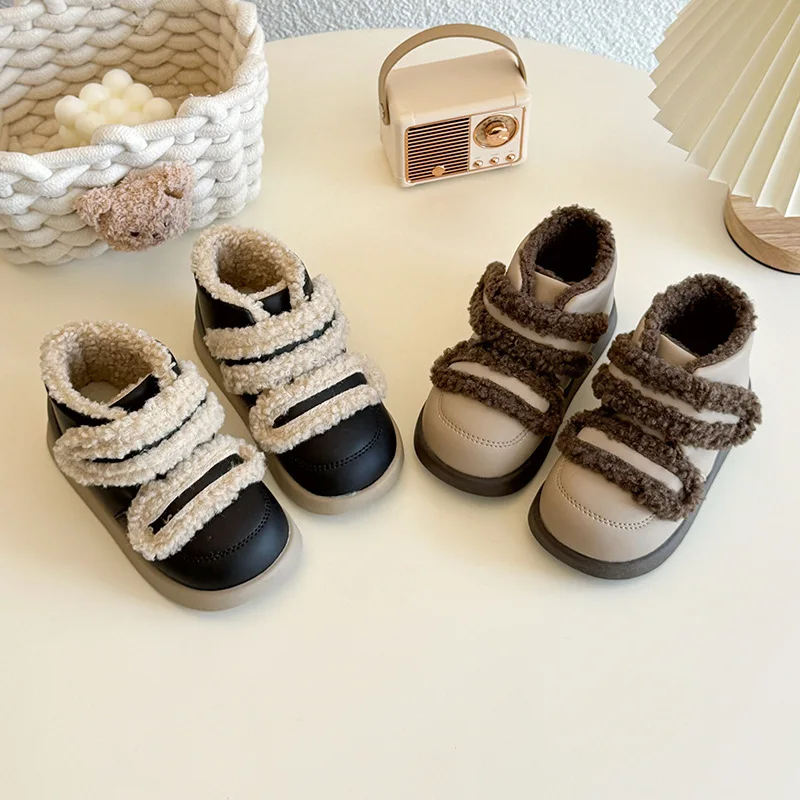 Fashion Rubber Sole Waterproof Winter Boots Children Ankle Kids Shoes Velvet Snow Boots for Girls and Boys