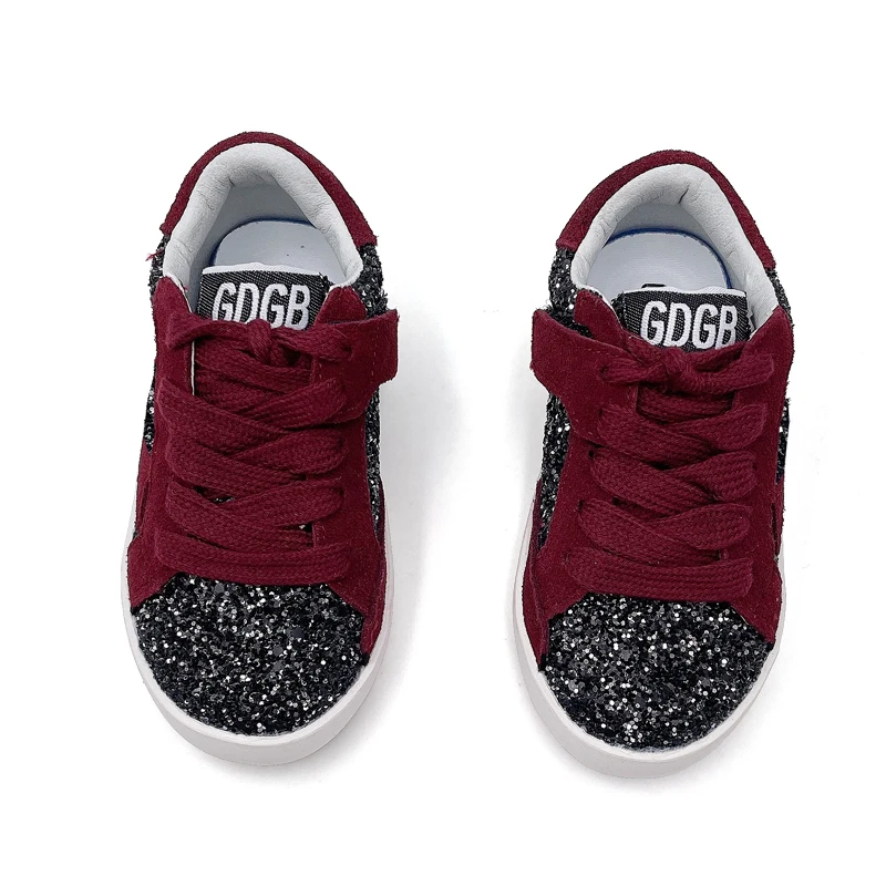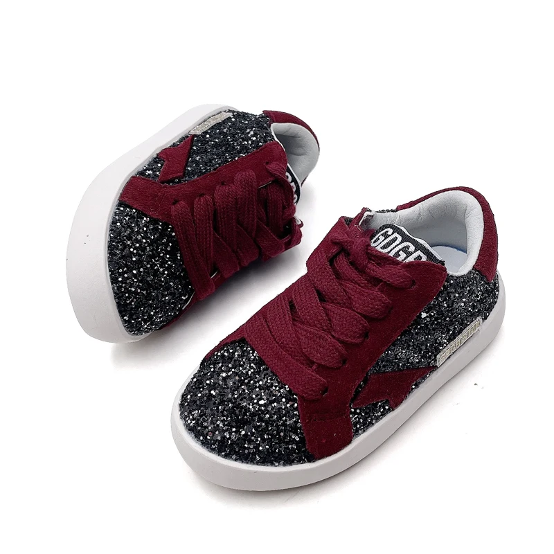 Black Glitter Children's Sneakers for Autumn Wholesale Red Star Baby Girls Casual Shoes New Styles Anti-slip Kids Sports Shoes
