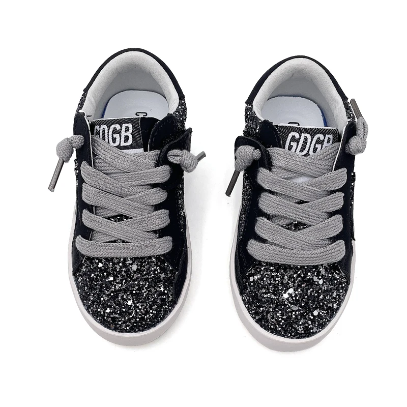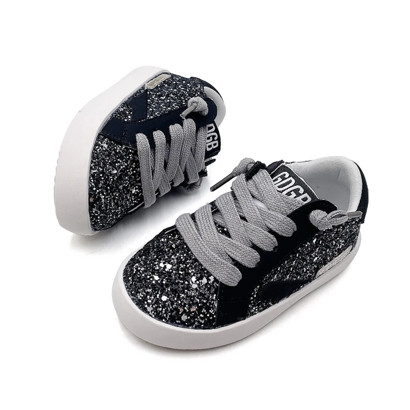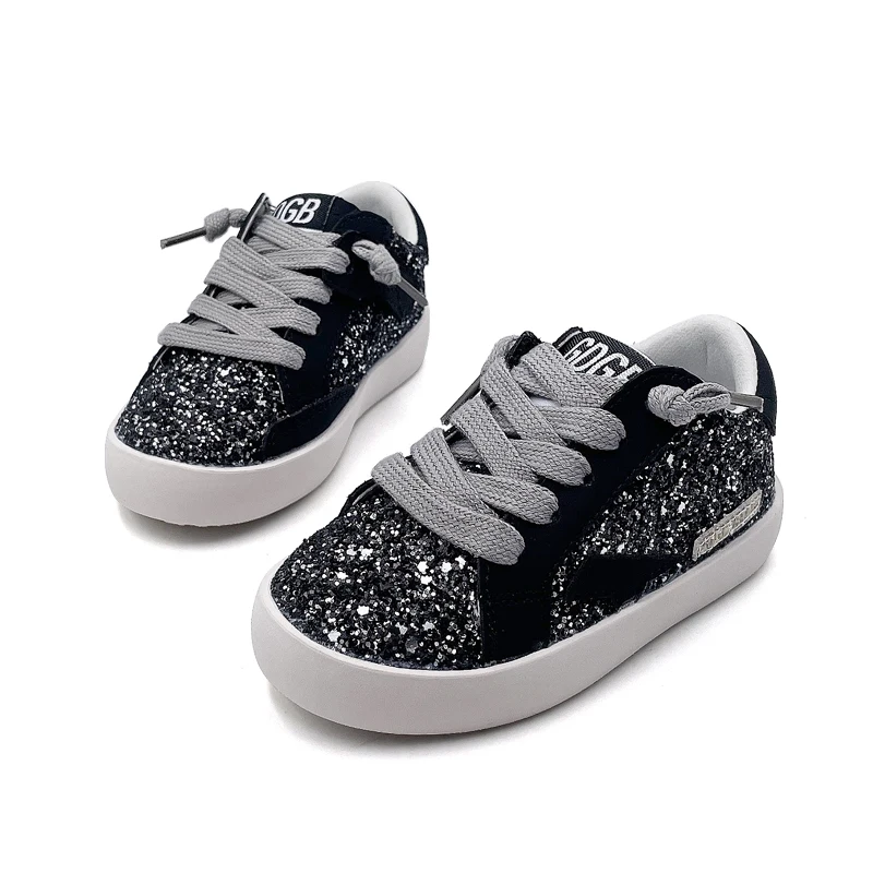 Wholesale Black Glitter Sneakers for Children Latest Casual Kids Star Shoes Trendy Fashionable Sports Shoes for Teenagers Girls