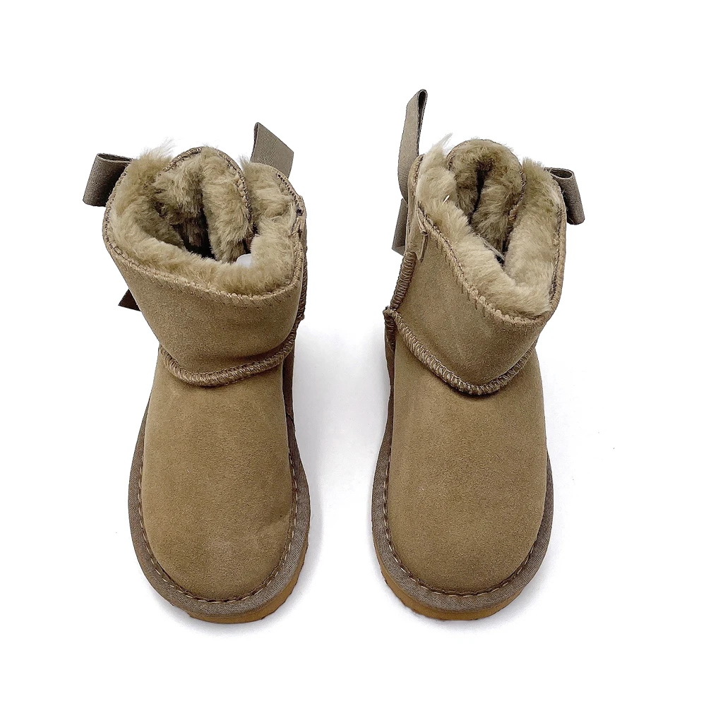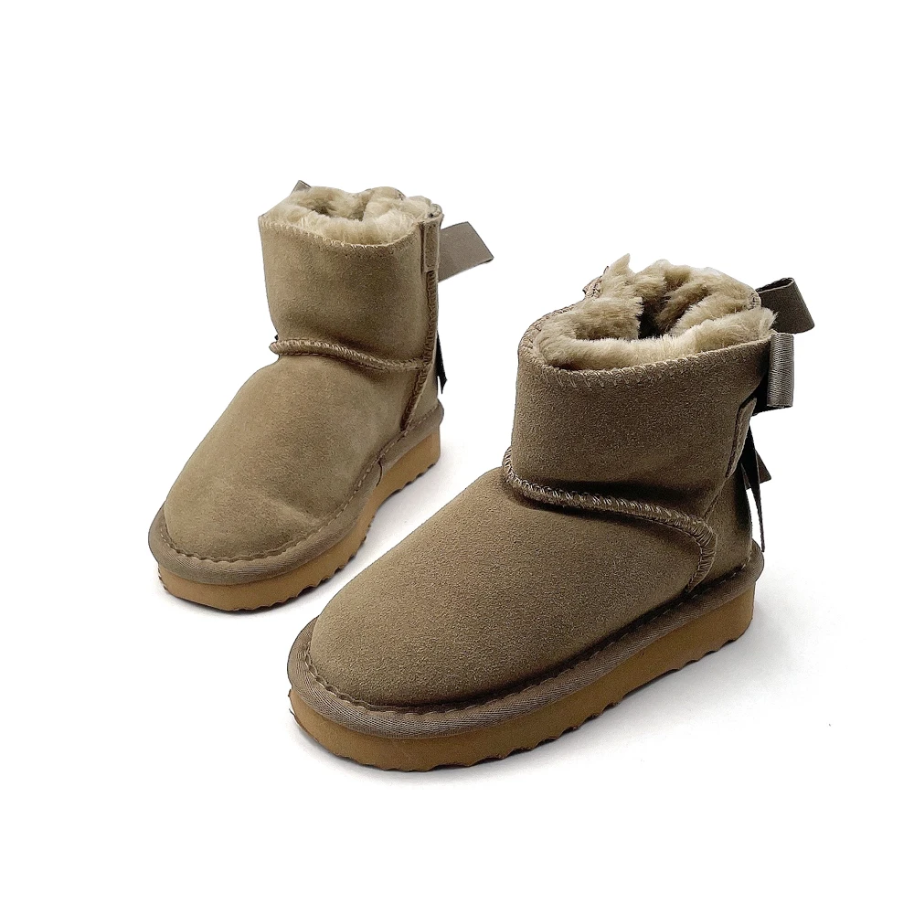 Genuine Leather Designer Snow Boots Women Girls Wholesale High Quality Children's Casual Shoes Latest Ankle Bow knot Boots Kids