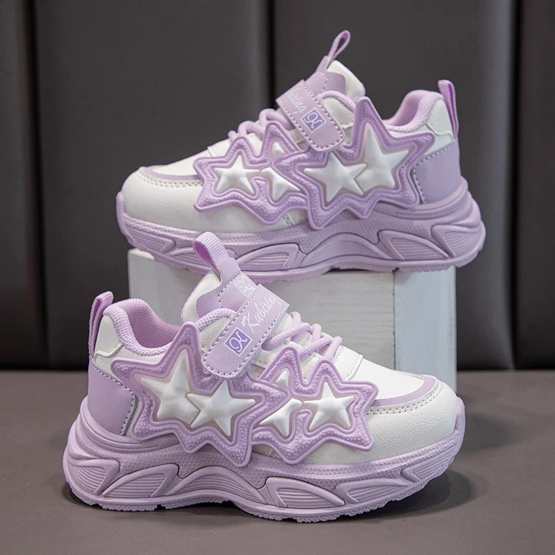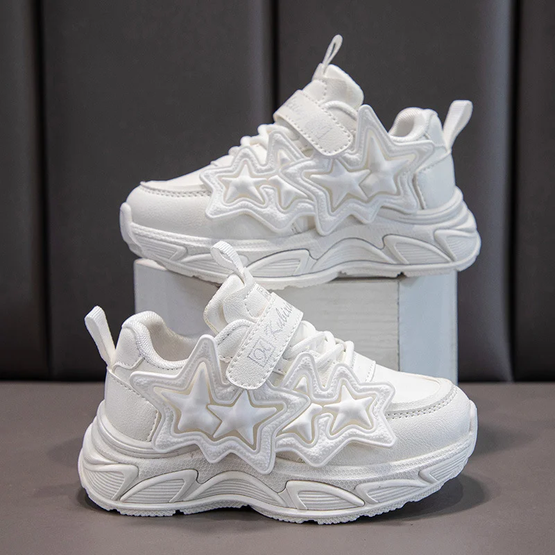 Star Design Girls Leisure Platform Sneakers Low MOQ White Kids Sports Footwear Wholesale Fashion Children's Casual Shoes