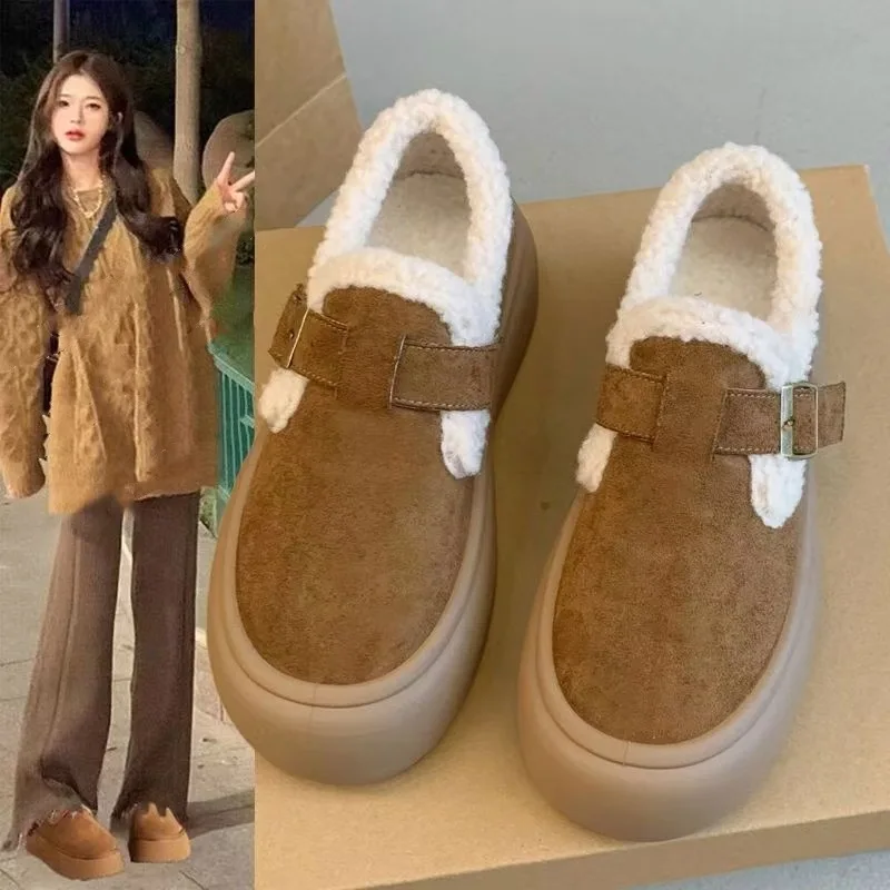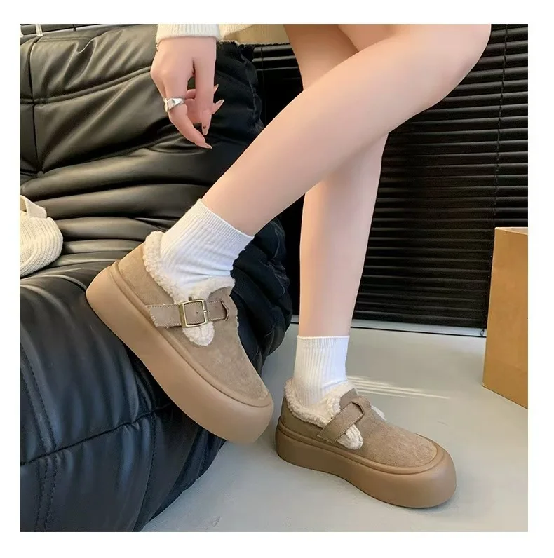 Popular Versatile Low Top Snow Boots Thick Rubber Soles Cotton Upper Birken-style Women's Fur Shoes 2026 New Winter Super Warm