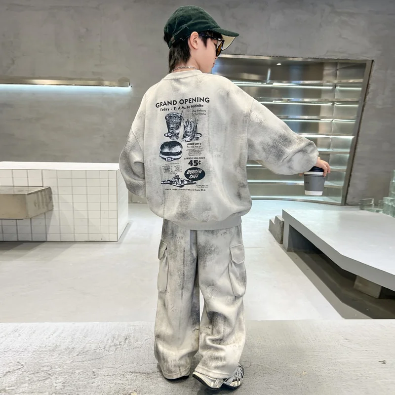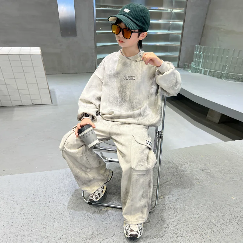 2026 New Style Boys' Sportswear Suit Casual Sweatshirt for Spring Autumn Fashion Solid Pattern Clothing Set Clothes for Kids