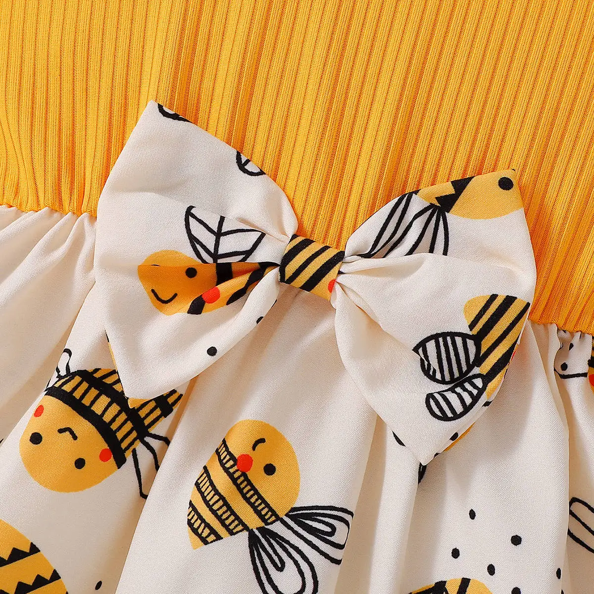 Summer Casual Baby Girl Dress with O-Neck Collar Bowknot Bee Print Lace Decoration Cotton High Quality ODM Clothes for Kids