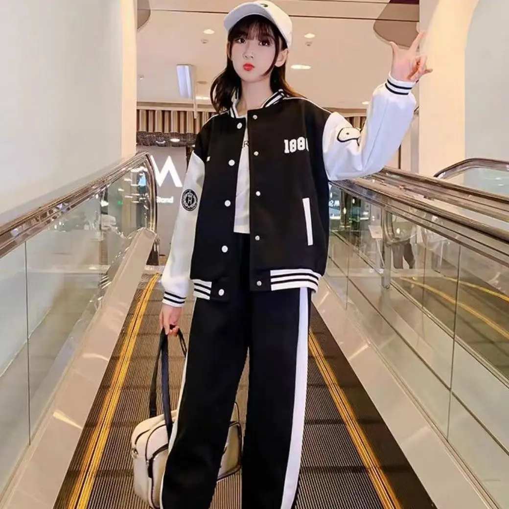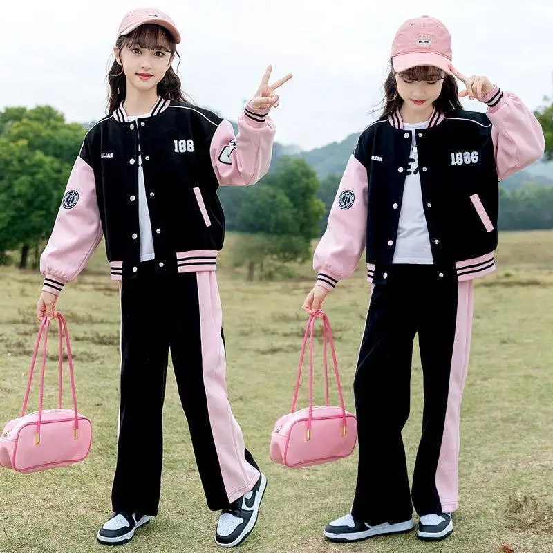 Girls Baseball Clothing Suits Spring Fall New Fashionable Trend Sports Sets Cotton Youth Teenage Outfits Clothes for Kids