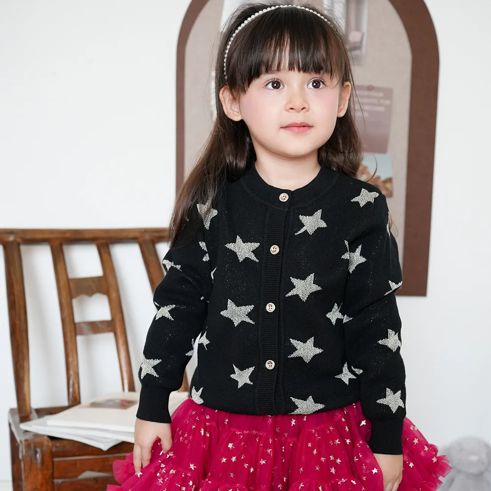 Custom Color Casual Breathable Kids Long Sleeve Knitted Sweater Cute Children's Cardigan Girls Autumn School Clothes