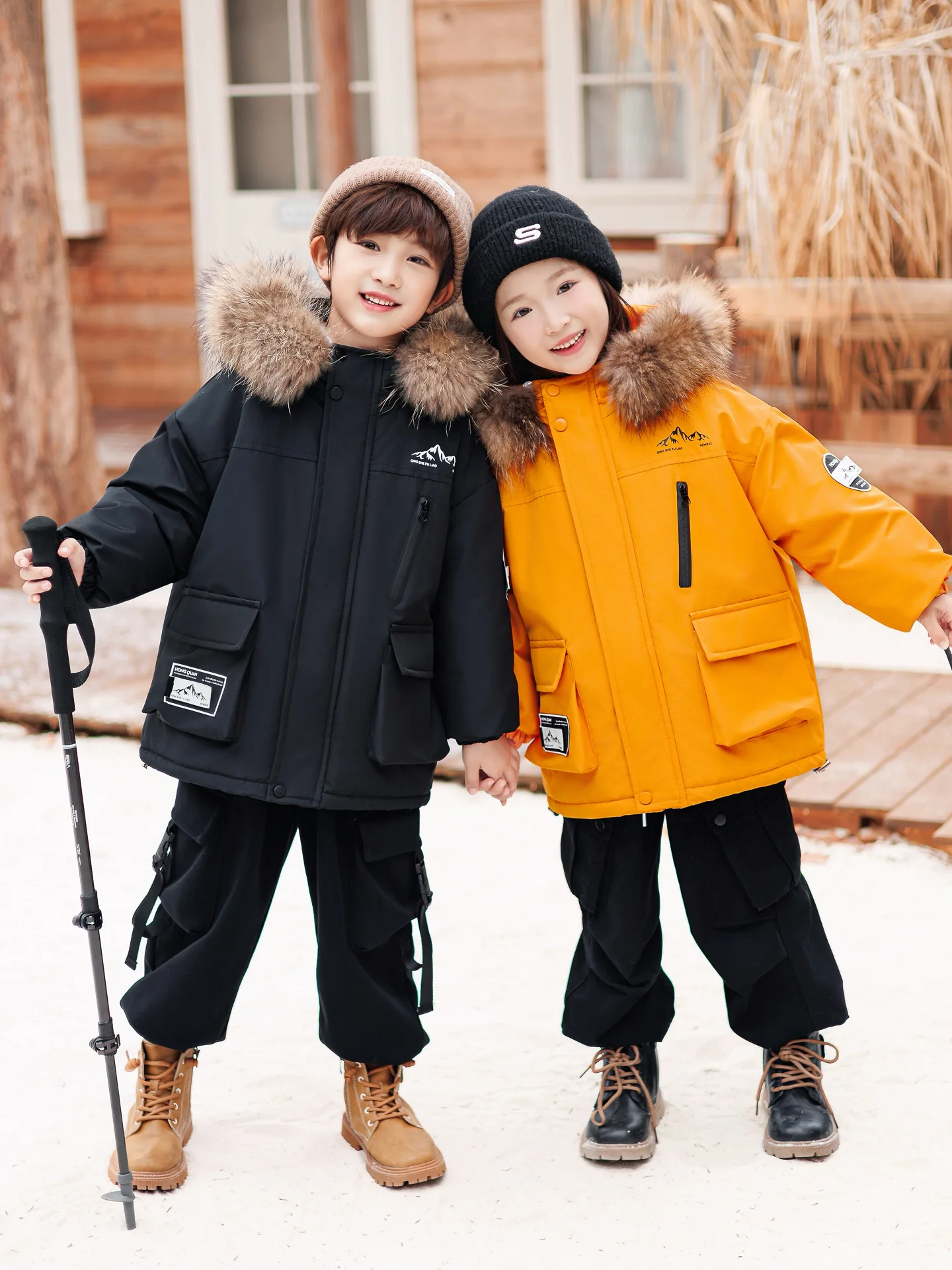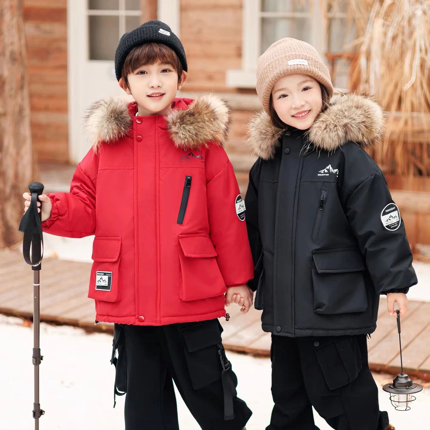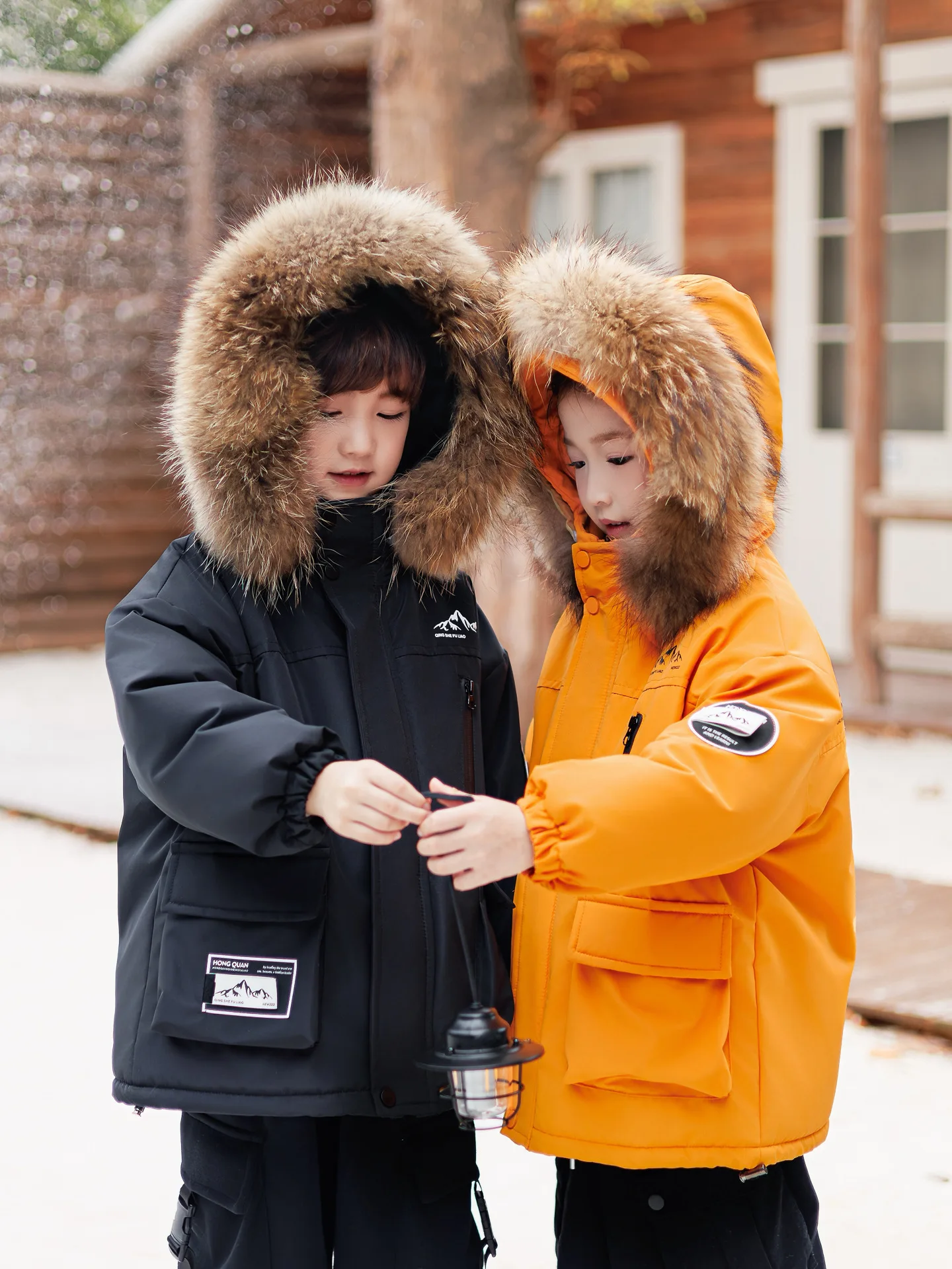 Customized Boys & Girls Children's Winter Hooded Thick Cotton-Padded Jacket with Breathable Worsted Shell Zipper Casual Parka