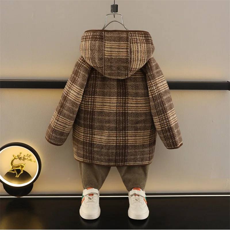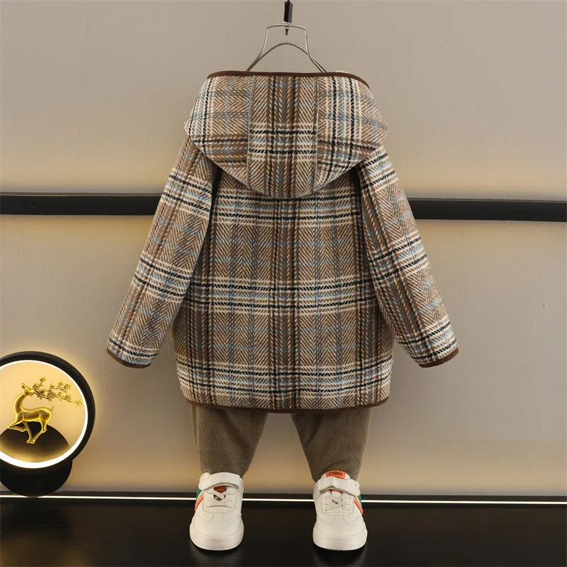 Customized Boys' Winter Plaid Zipper Long Fleece-Lined Thick Eco-friendly Warm Coat Western Style Clothes for Kids