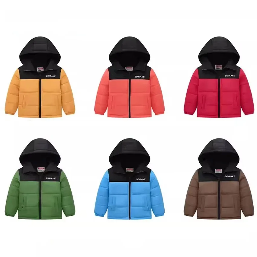 Customized Autumn Winter Boys Girls Color Matching Casual Hooded Zipper Quilted Cotton-Padded Quick Dry Breathable Windproof