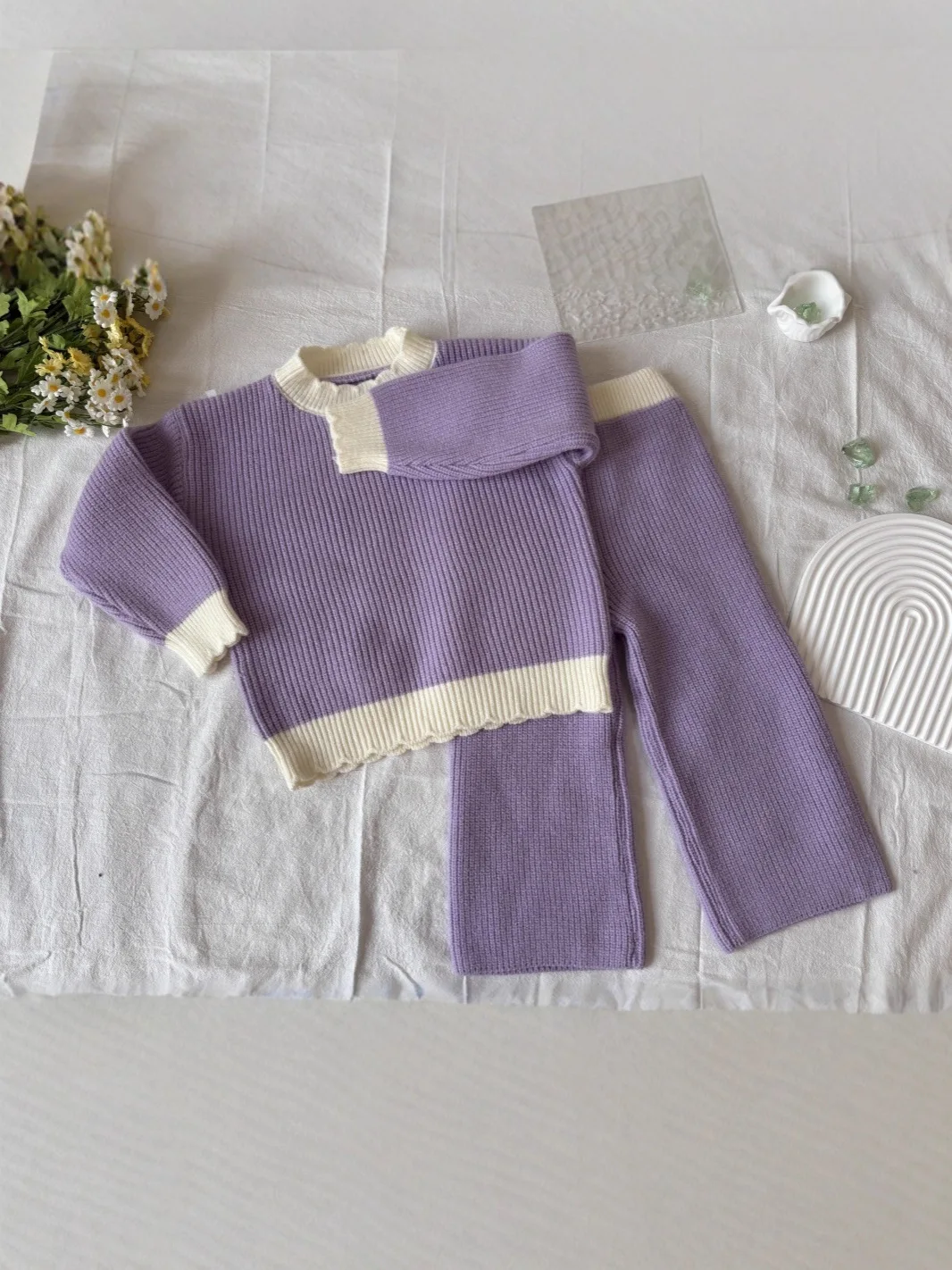 Customized Girls' Spring Two-Piece Casual Solid Color Suit Set with Polyester/Cotton Tops and Pants Clothes for Kids