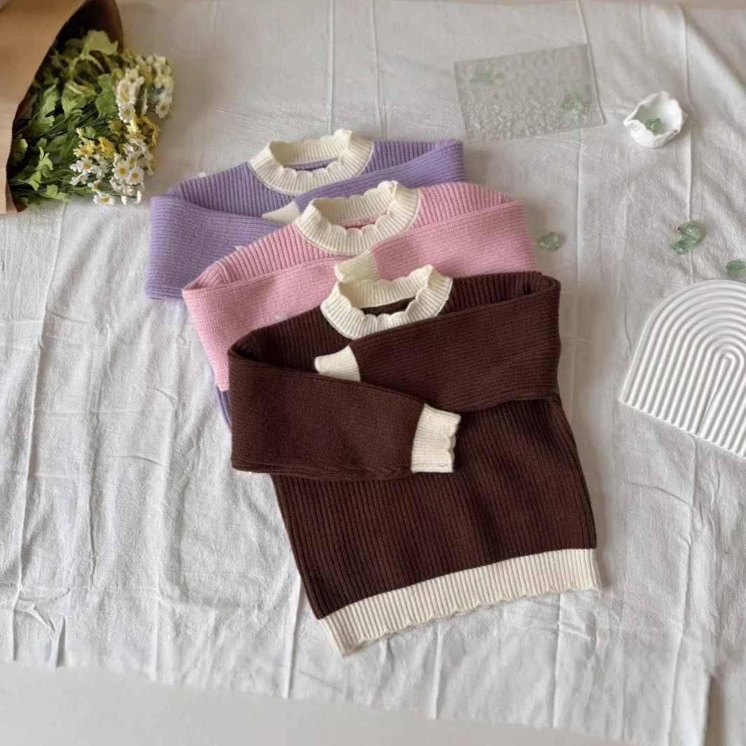 Children's Long Sleeve Top Apparel Customizable Plain Washed Ripped Tee Basic Layering Shirt Multi Colors