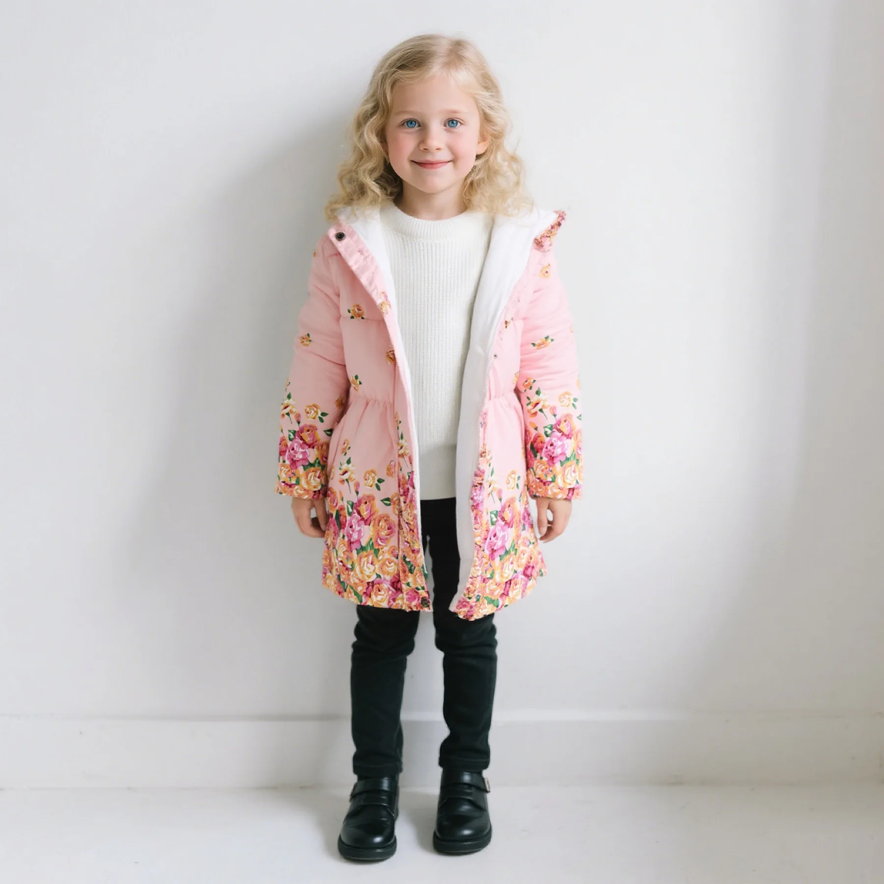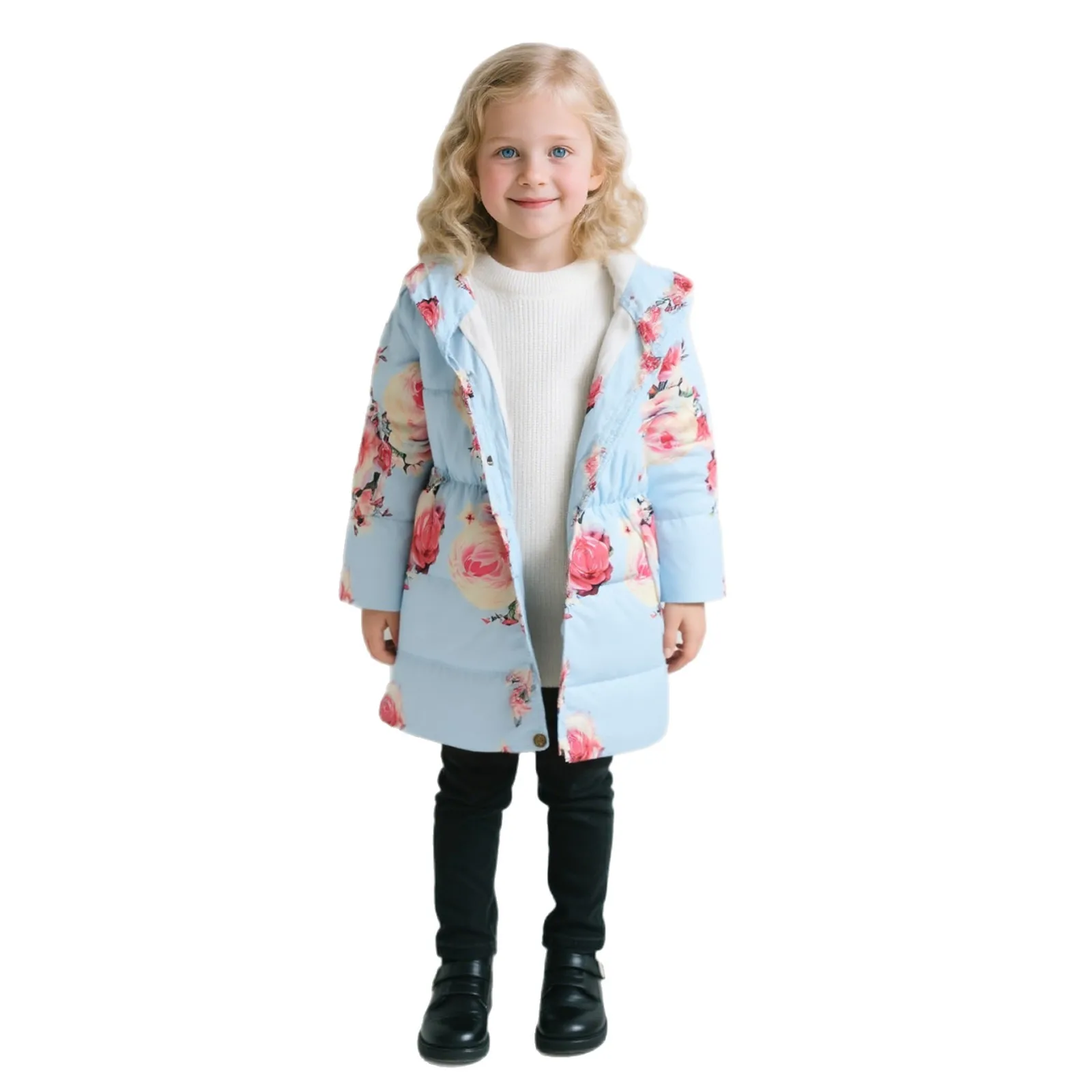 Custom Girls Winter Coat Faux Fur Hooded Windproof Jacket Fleece Liend Padded Thick Warm Parka Outdoor Overcoat Cotton Jackets