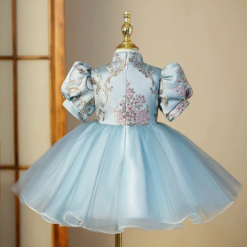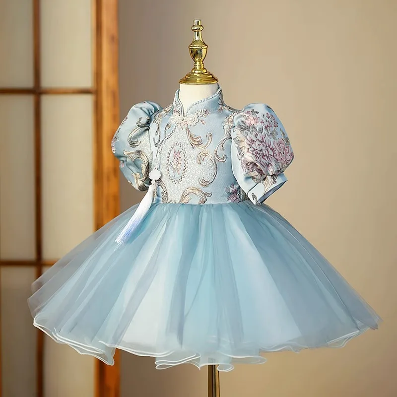 Custom Luxury Satin Flower Girl Dresses Wedding Floral Birthday Party Girls Pageant Evening Gown Chinese Style Clothes for Kids