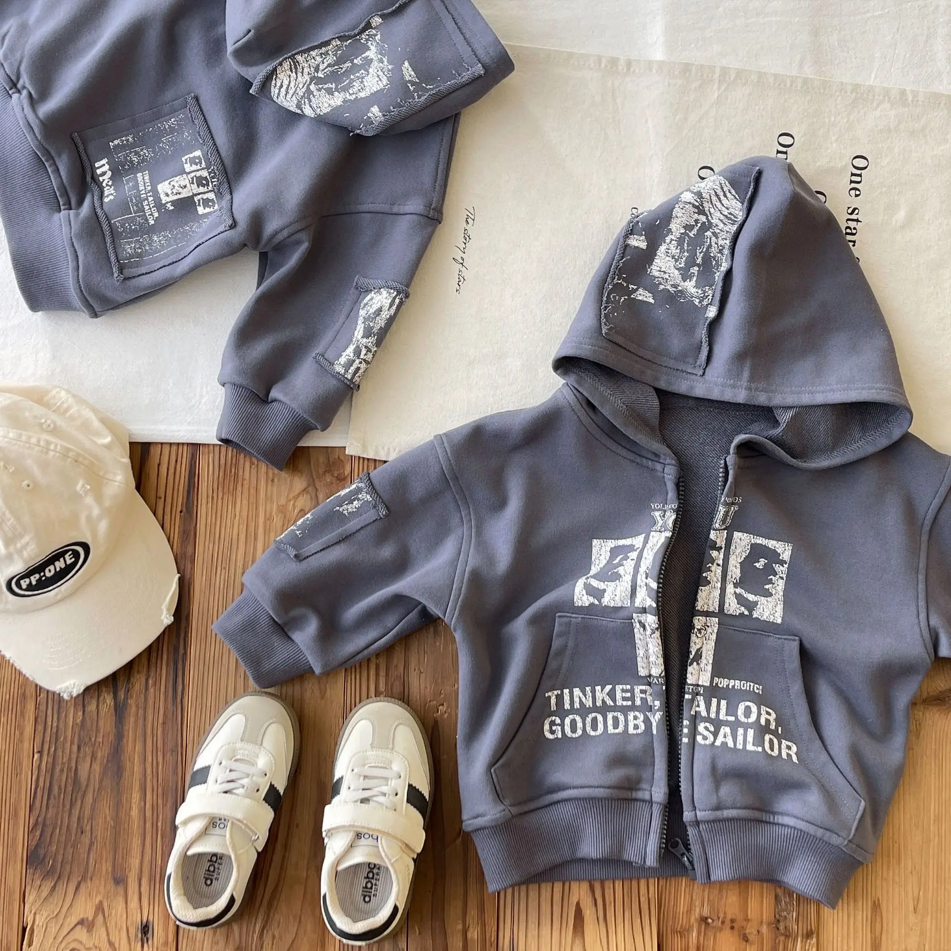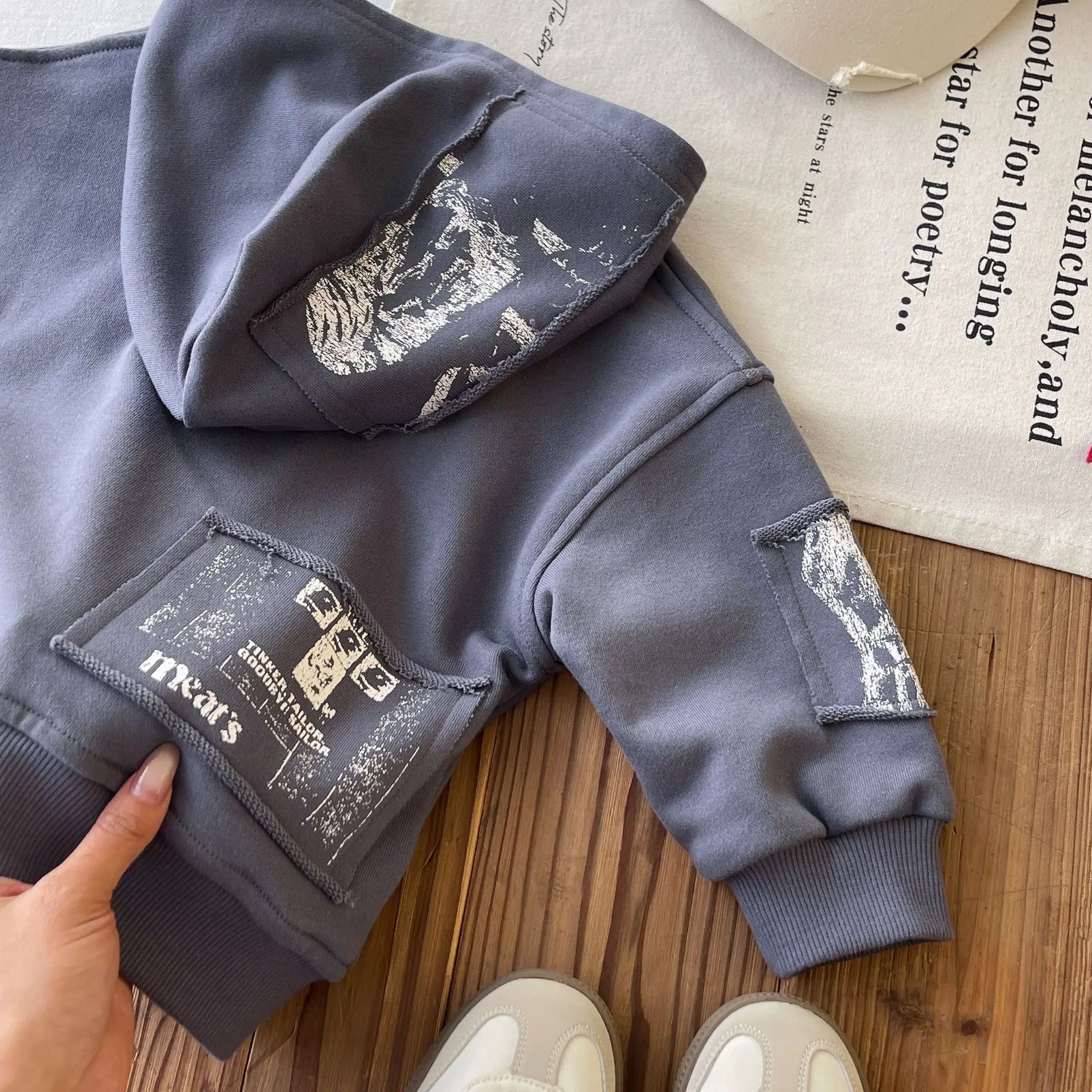 Custom Japanese-style Spring and Autumn Niche Vintage Children's American Hoodie with Hood Cardigan Clothes for Kids