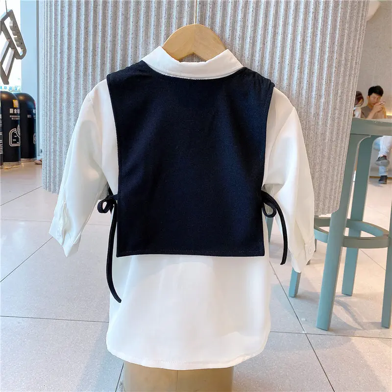 2023 Fashion Korean Loose Little Girls Long Sleeve Shirt Two Piece Set Blouse Cute White Long Tops Autumn Children Clothes Girl