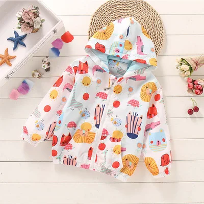 2021 Long Sleeve Cartoon Flower Windbreaker Kids Cartoon Outerwear Coats Trench Hooded Children Clothes for Girls