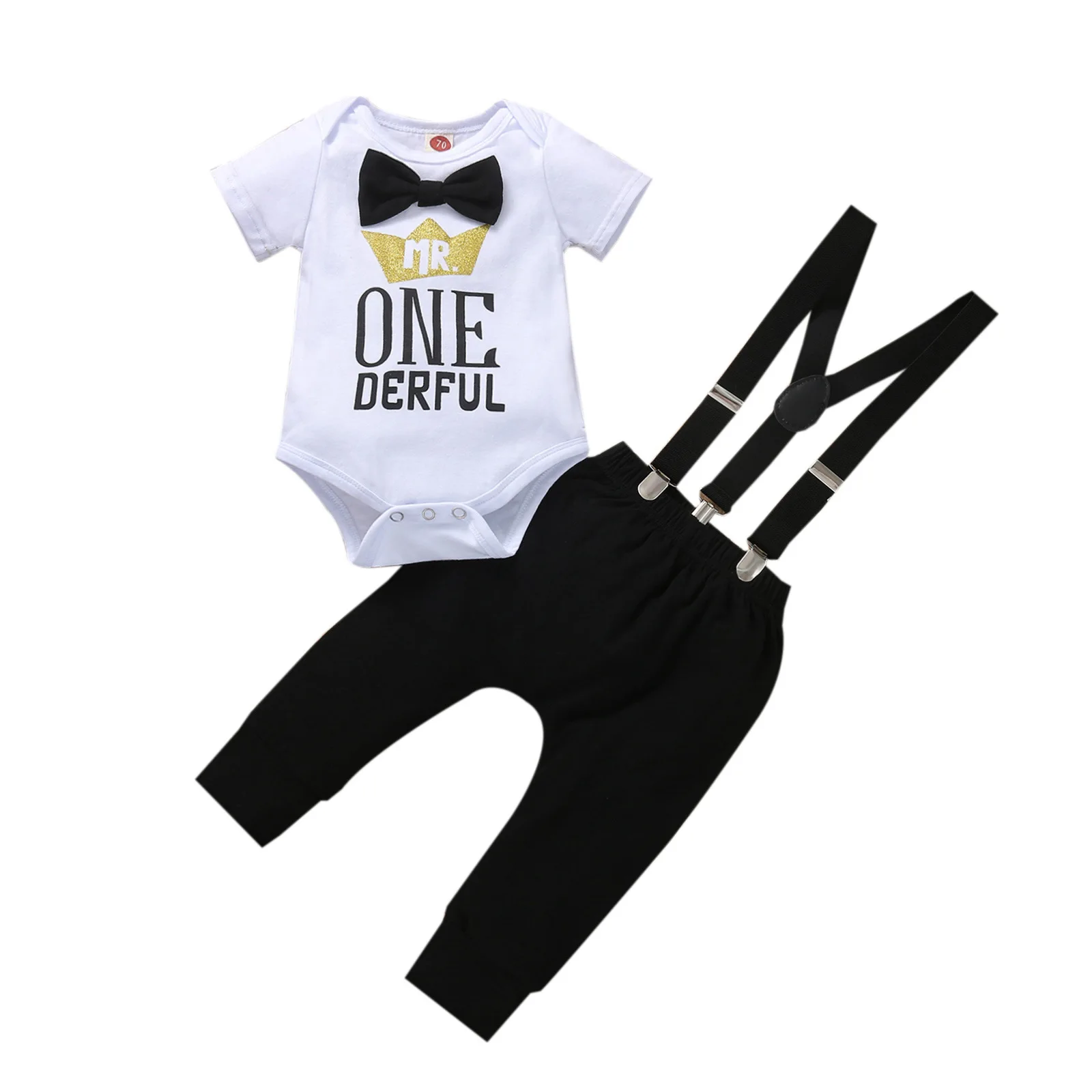 2021 Summer Boy Clothes 1 Year Birthday Outfits Cartoon Gentleman Tie Romper Straps Shorts 2PCS Toddler Baby Clothing Sets
