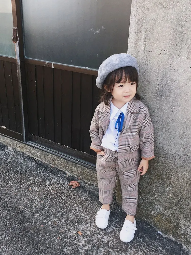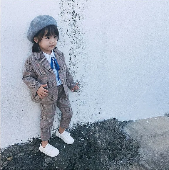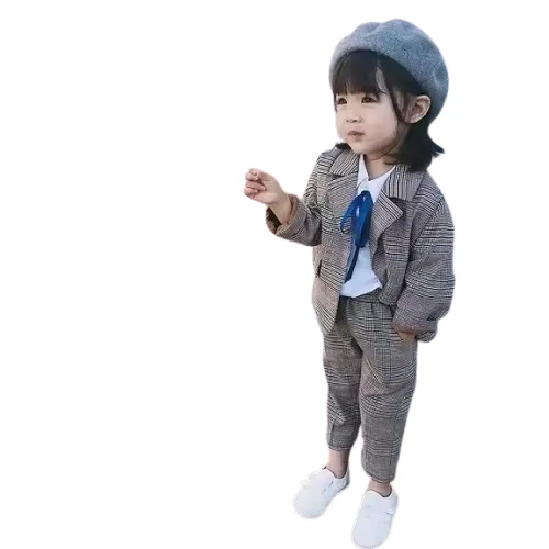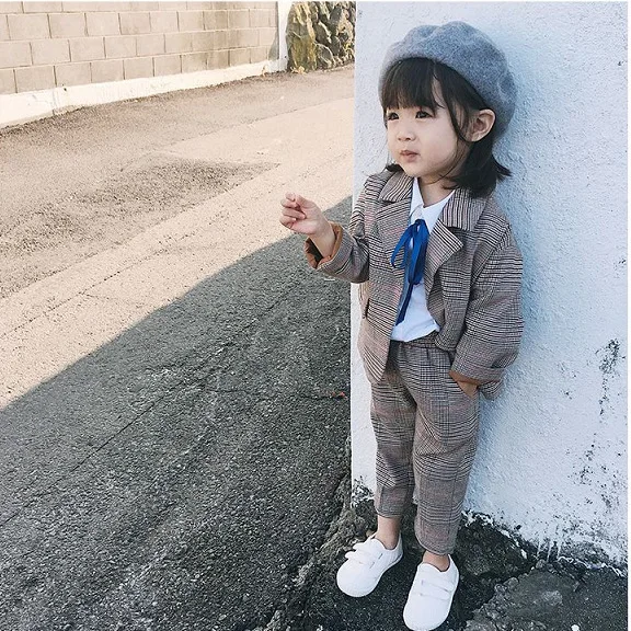 Autumn 2019 New Fashion British Style Plaid Kids Fall Boutique Suit Clothing Girls Clothing Sets for Ages 2 to 8 Years