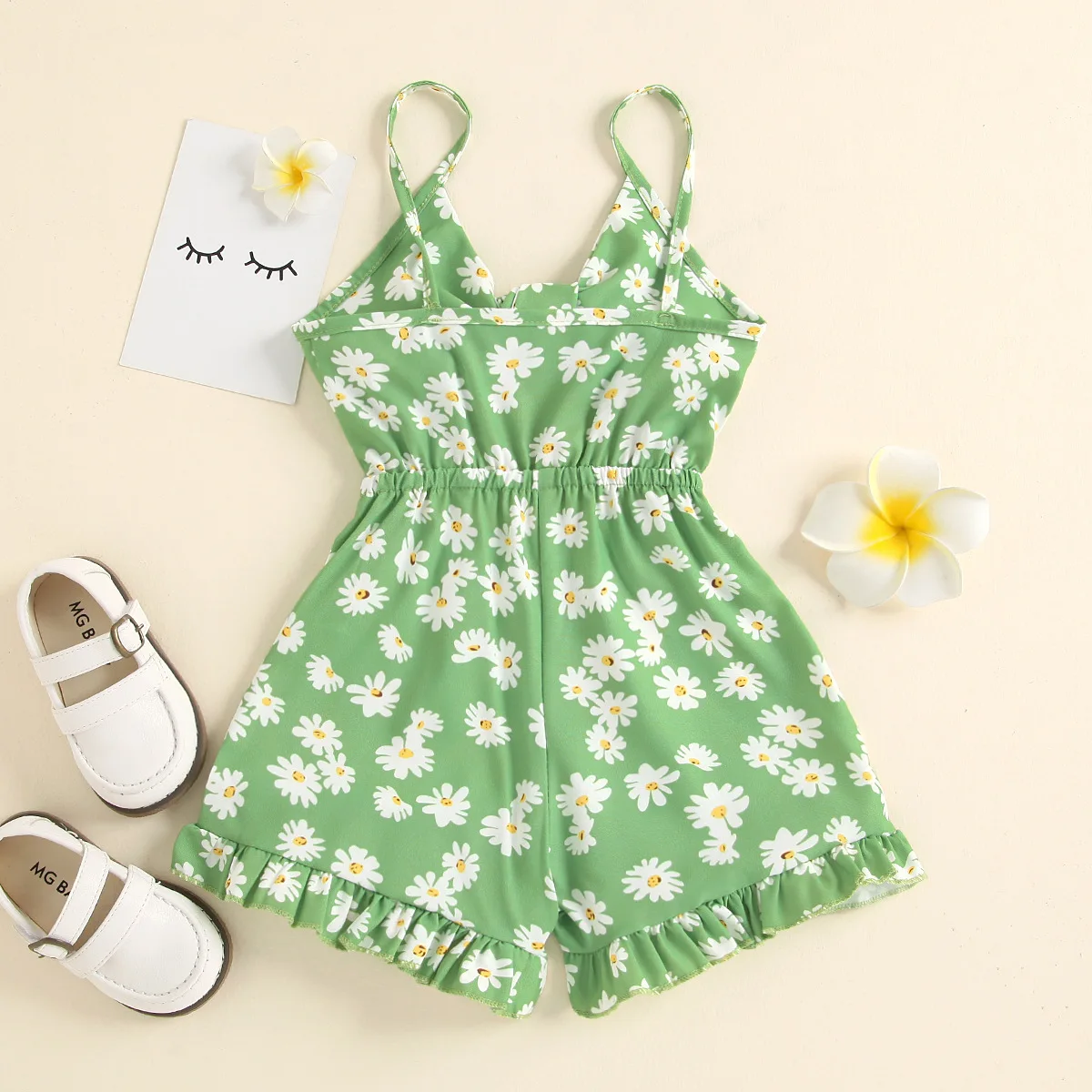 2021 Summer Baby Clothes Toddler Girl Outfit Fresh Floral Printed Sleeveless Ruffle Overalls Cute Green Girls Jumpsuit