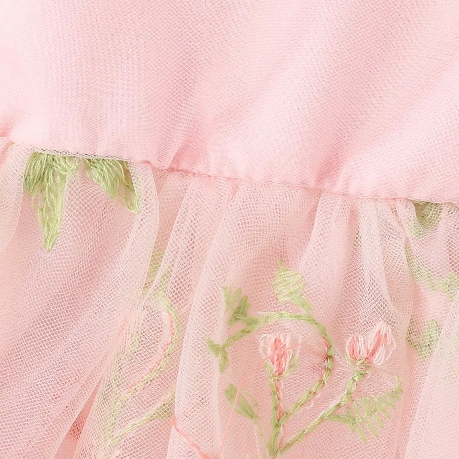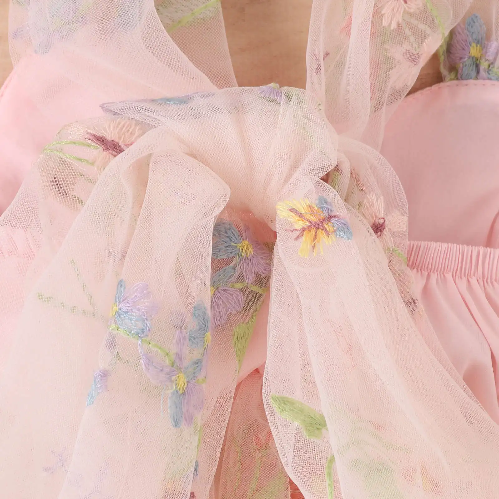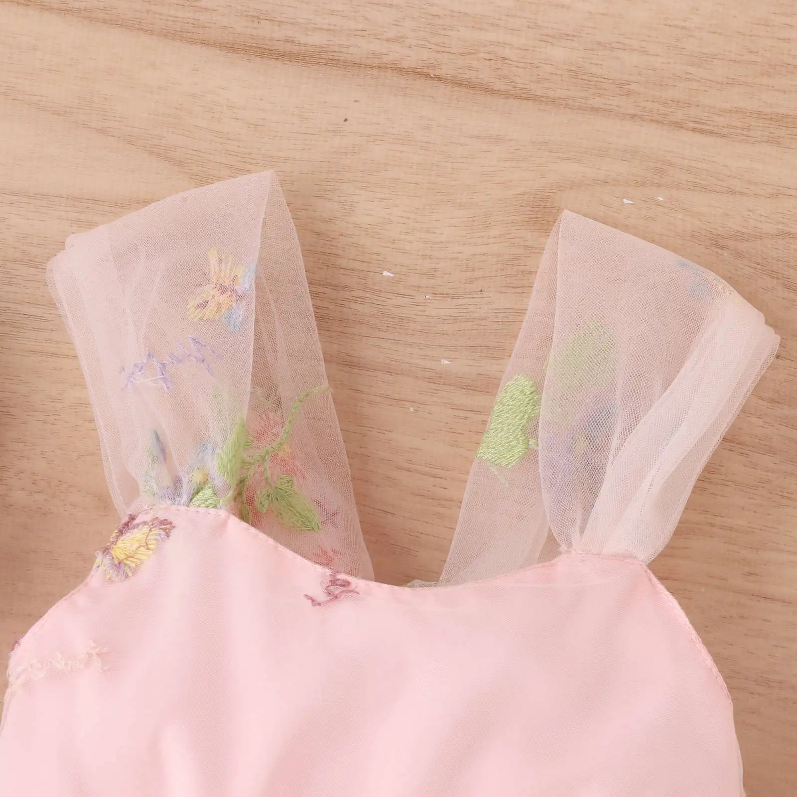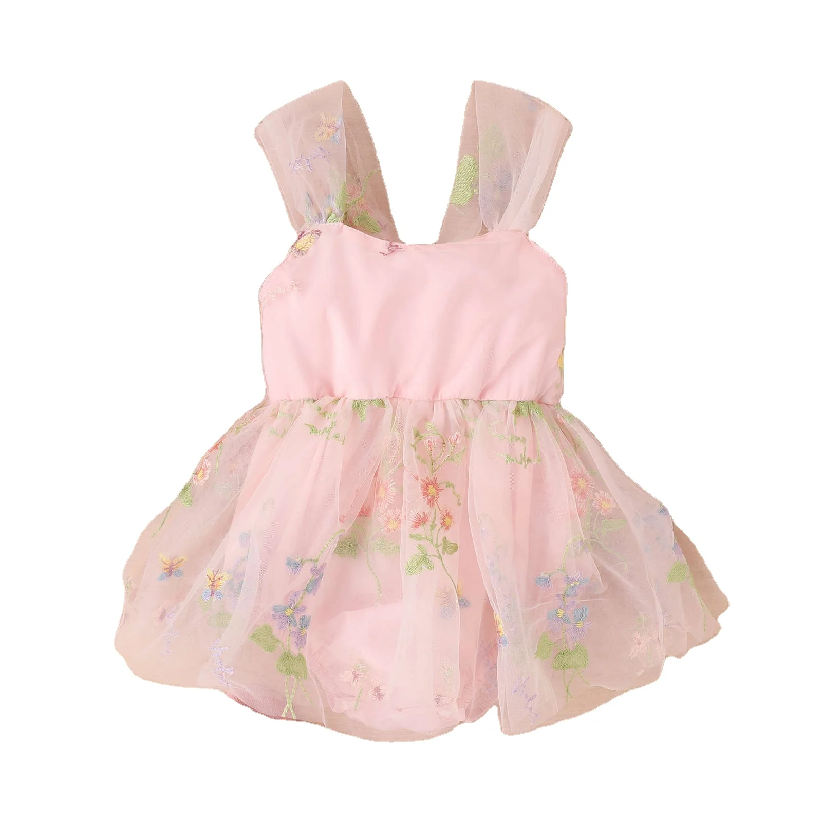 Summer New Design 2023 Baby Girl Princess Romper Dress Sleeveless Floral Embroidery Lace Mesh Backless Bowknot Toddler Jumpsuit
