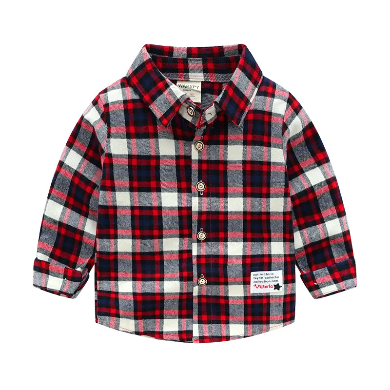Children Plaid 2020 Spring Autumn Turn Down Collar Wear Button Long Sleeve Shirt Baby Top Boys Plaid Shirts for Wholesale