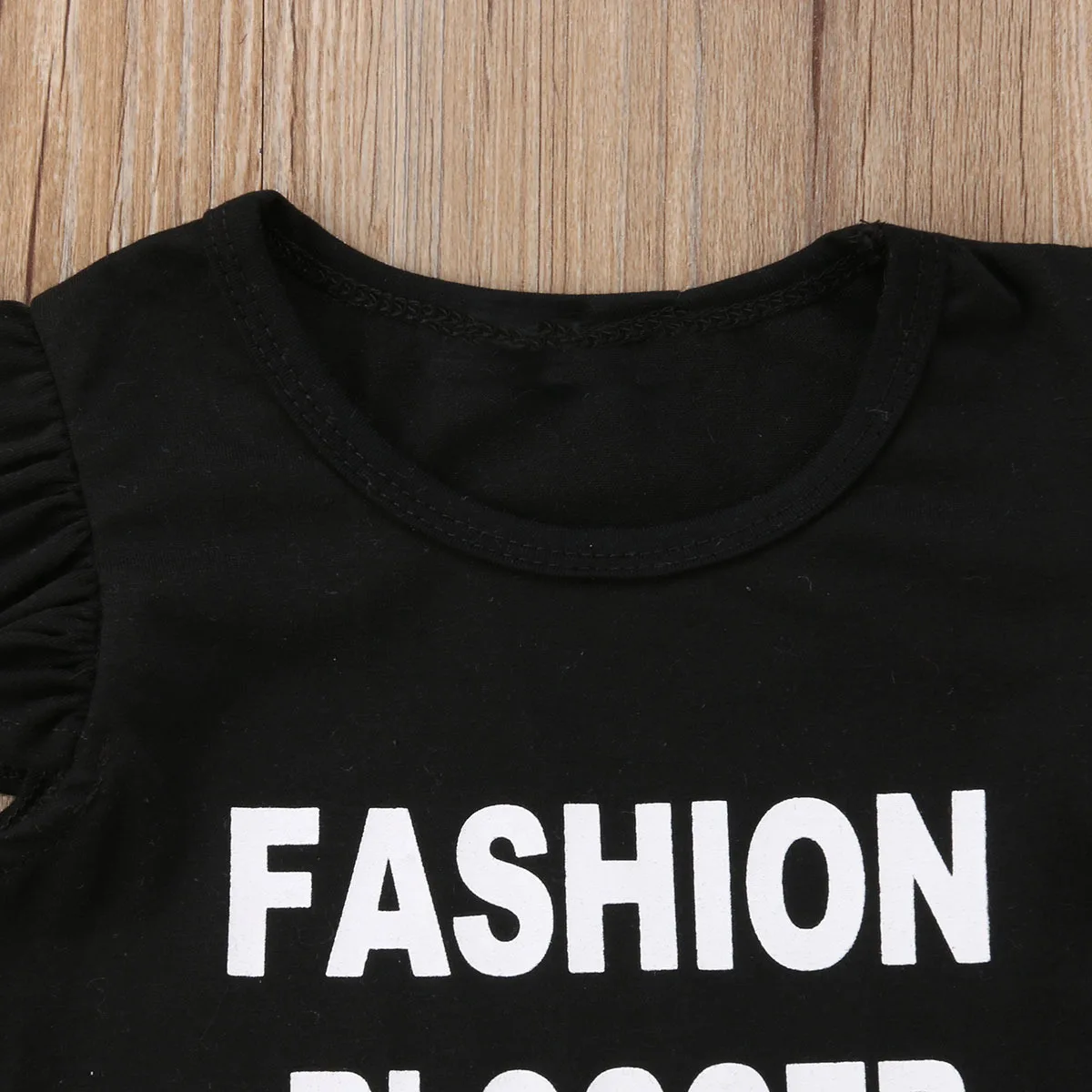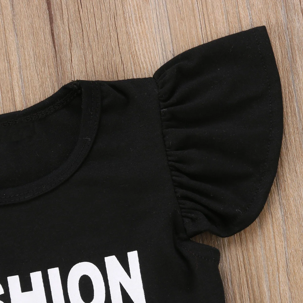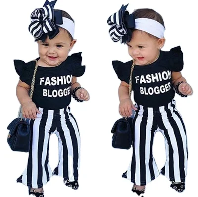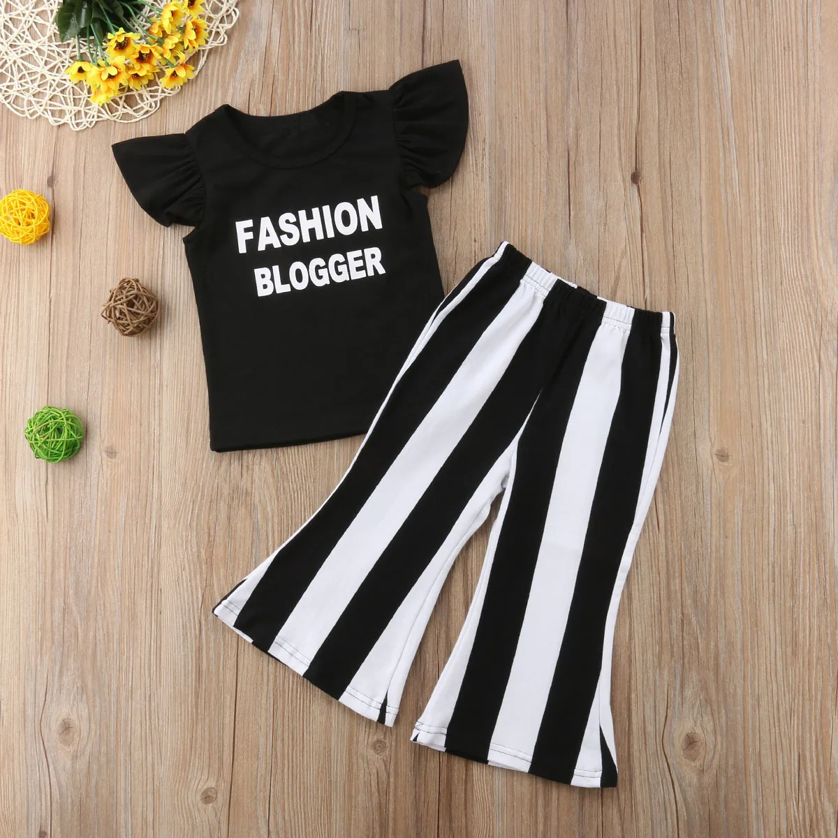 2020 Children Clothing Sets Toddler Girl Boutique Outfits Black Ruffle Sleeve Tops+stripe Pants 2pcs Kids Summer Clothing
