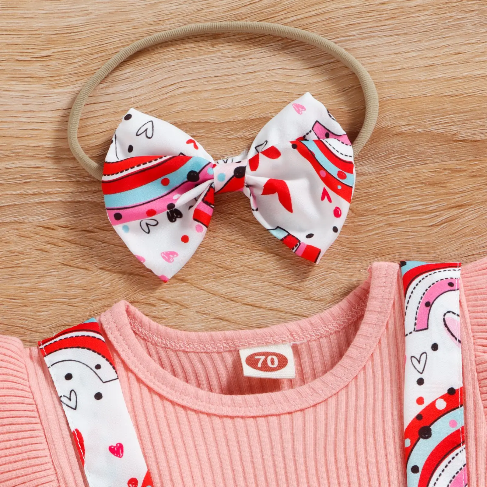 2022 Summer Toddler Clothing Headband Fly Sleeve Rainbow Flowers Printed Bow Infant Girls Jumpsuits Baby Cute Romper