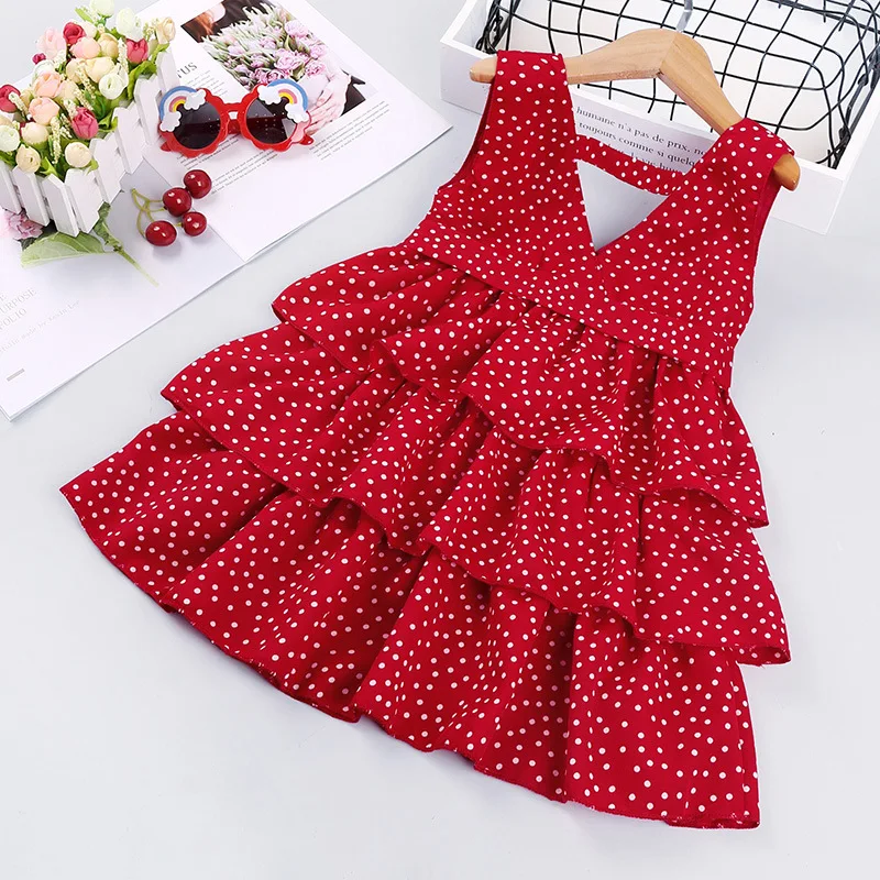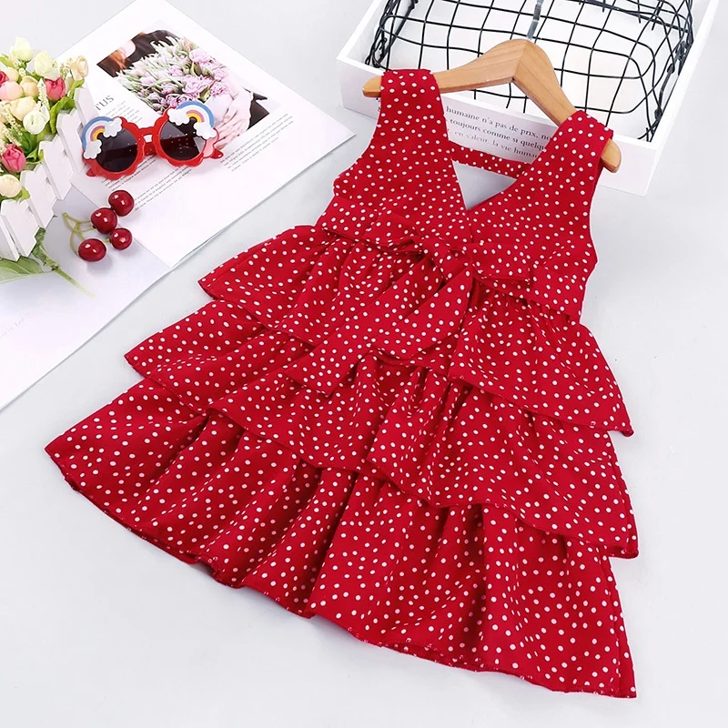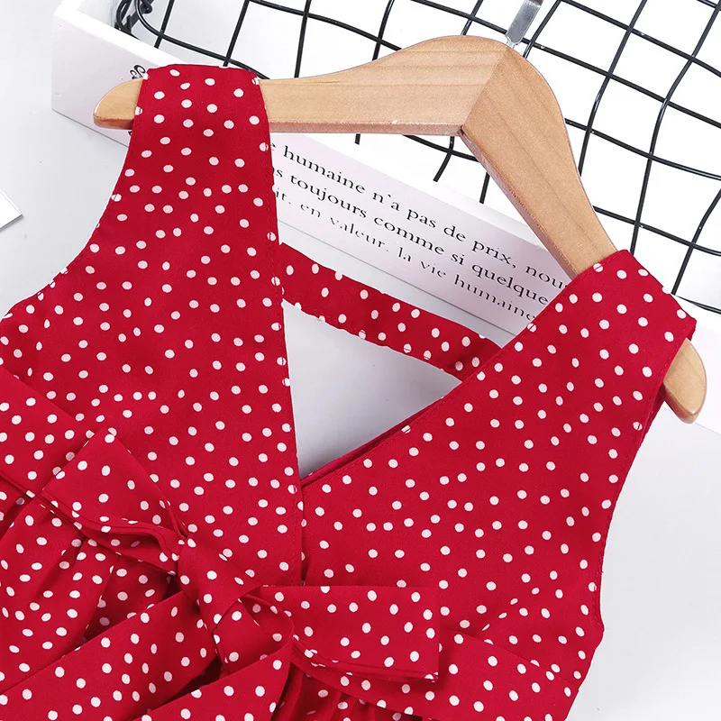 2021 New Polka Dot Belt Bow Sleeveless Princess Dresses Kids Clothes Girls Summer Baby Girl Clothing Sling Children Dress