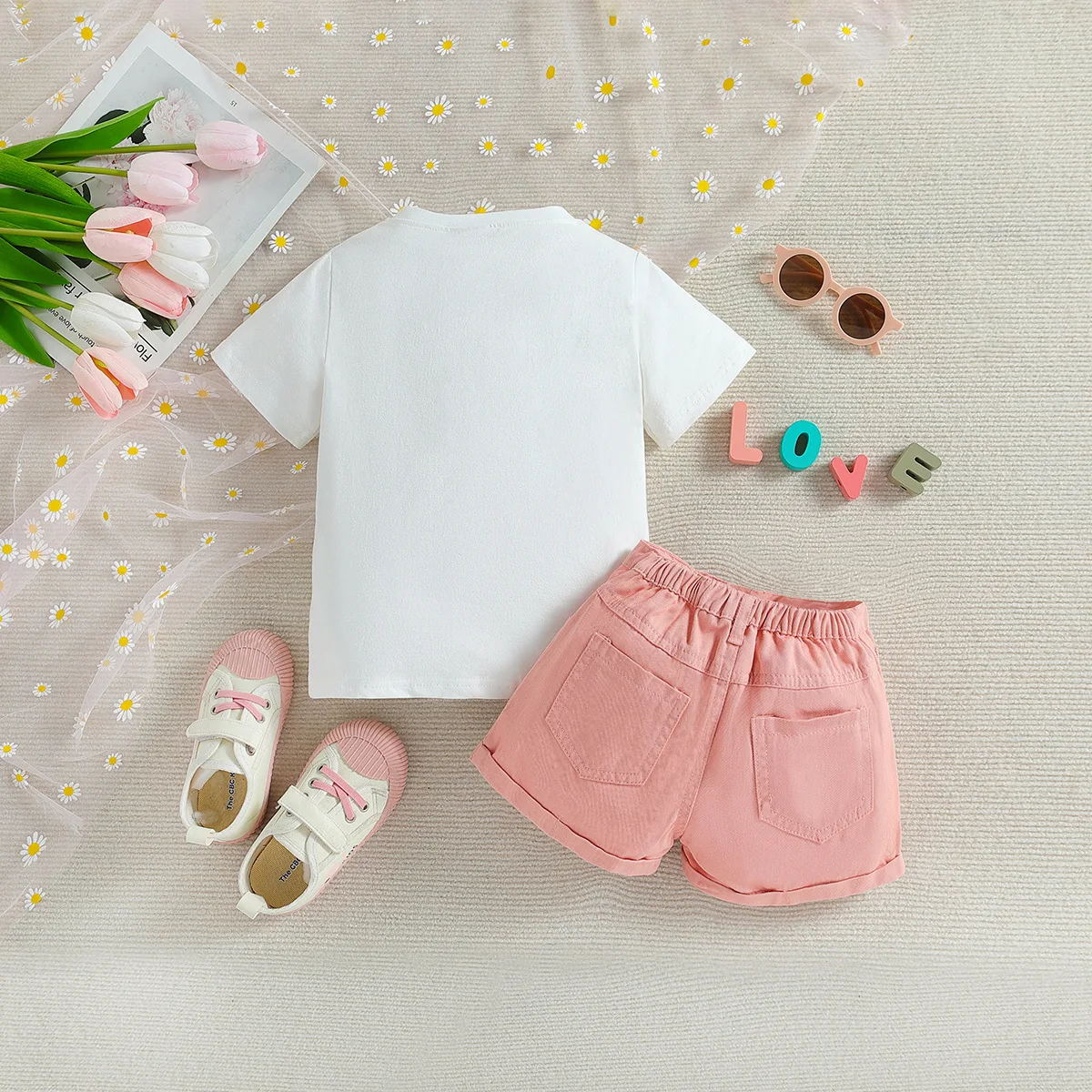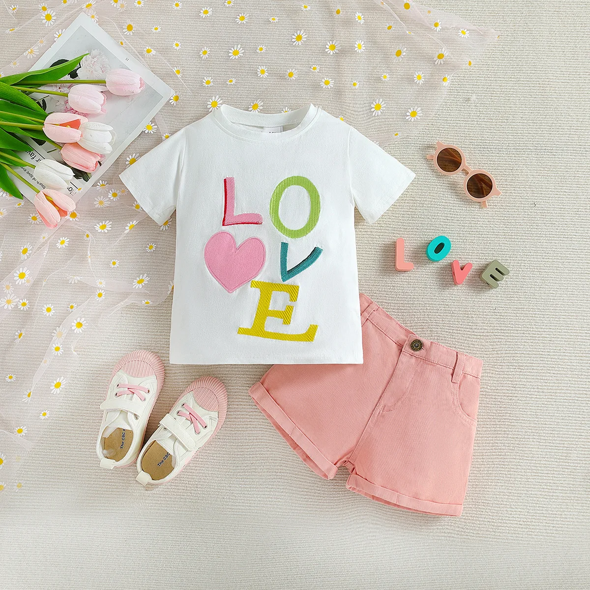 Customizable Girls Apparel Set T Shirt with 3D Letter Embroidery and Lace Skirt Cute Summer Outfit for Girls