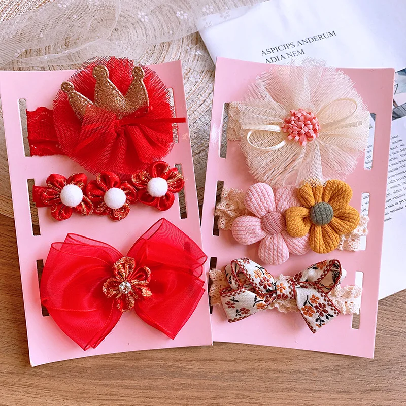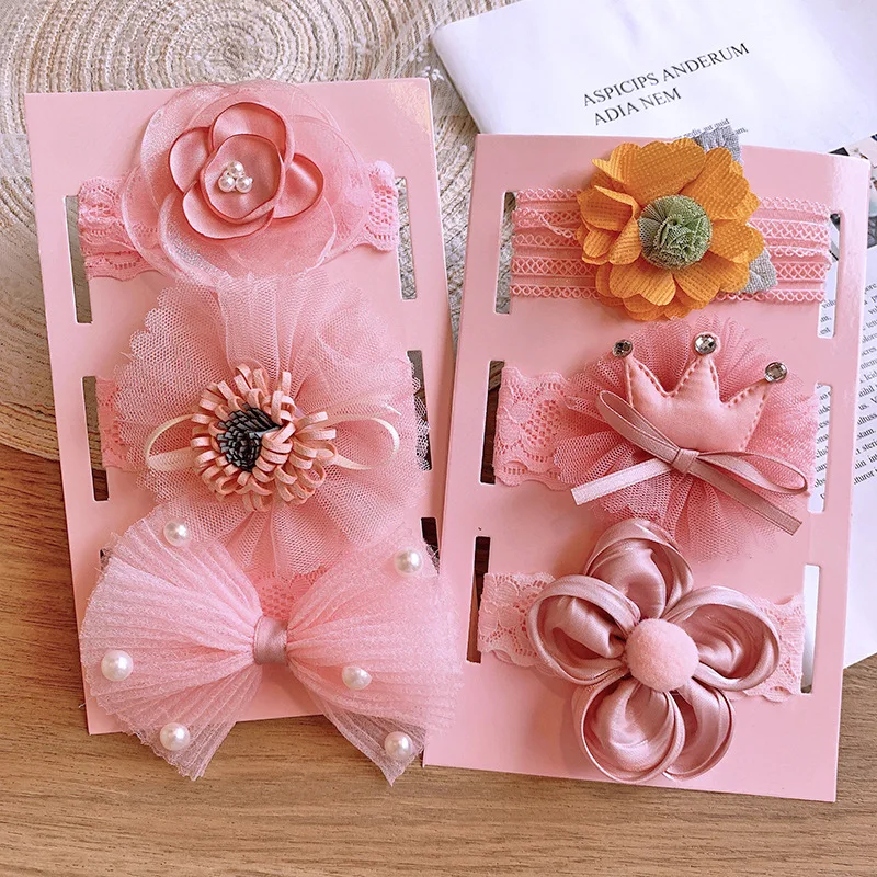 3pcs/lot Cute Bow Baby Headband for Girl Lace Head Bands Turban Newborn Floral Headbands Hair Accessories Baby Gifts for 0-3year
