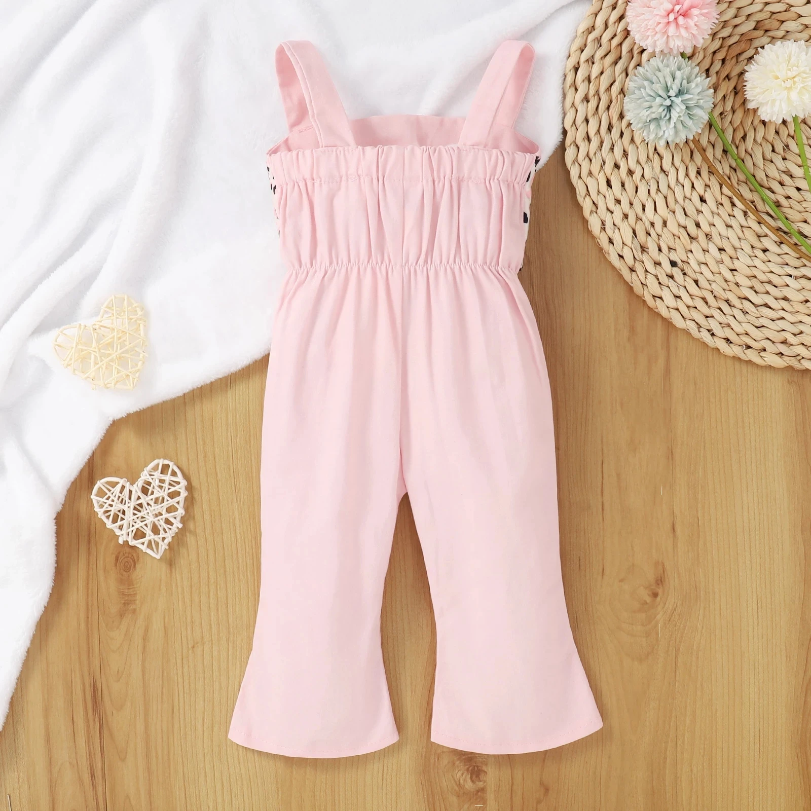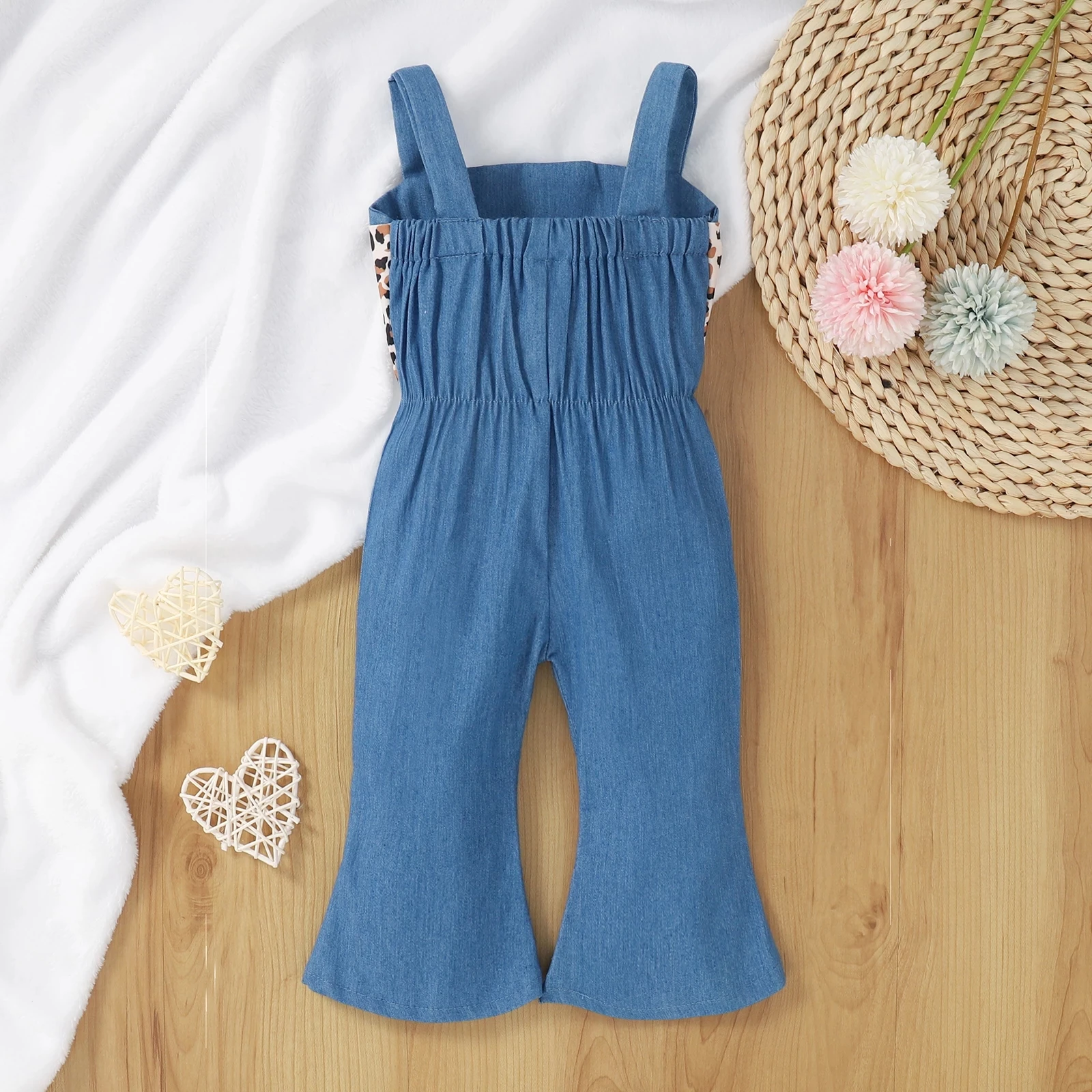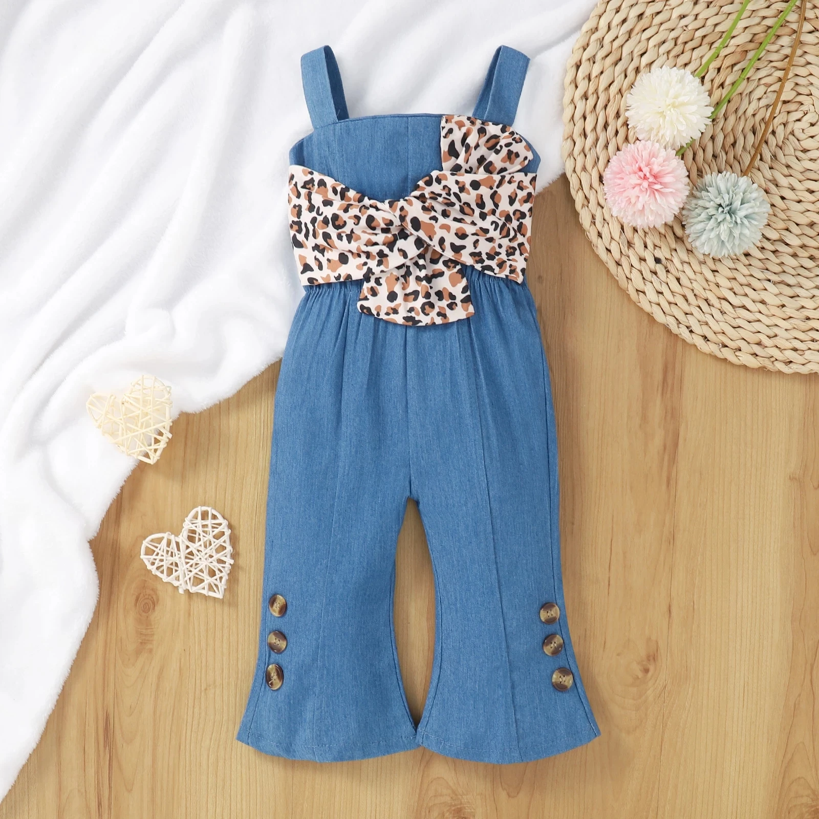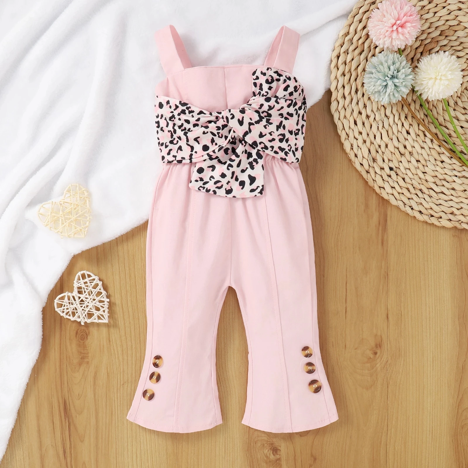 2022 New Design Summer Lovely Kids Clothes Leopard Printed Strap Sleeveless Elastic Waist Flare Pants Outfits Girls Jumpsuits