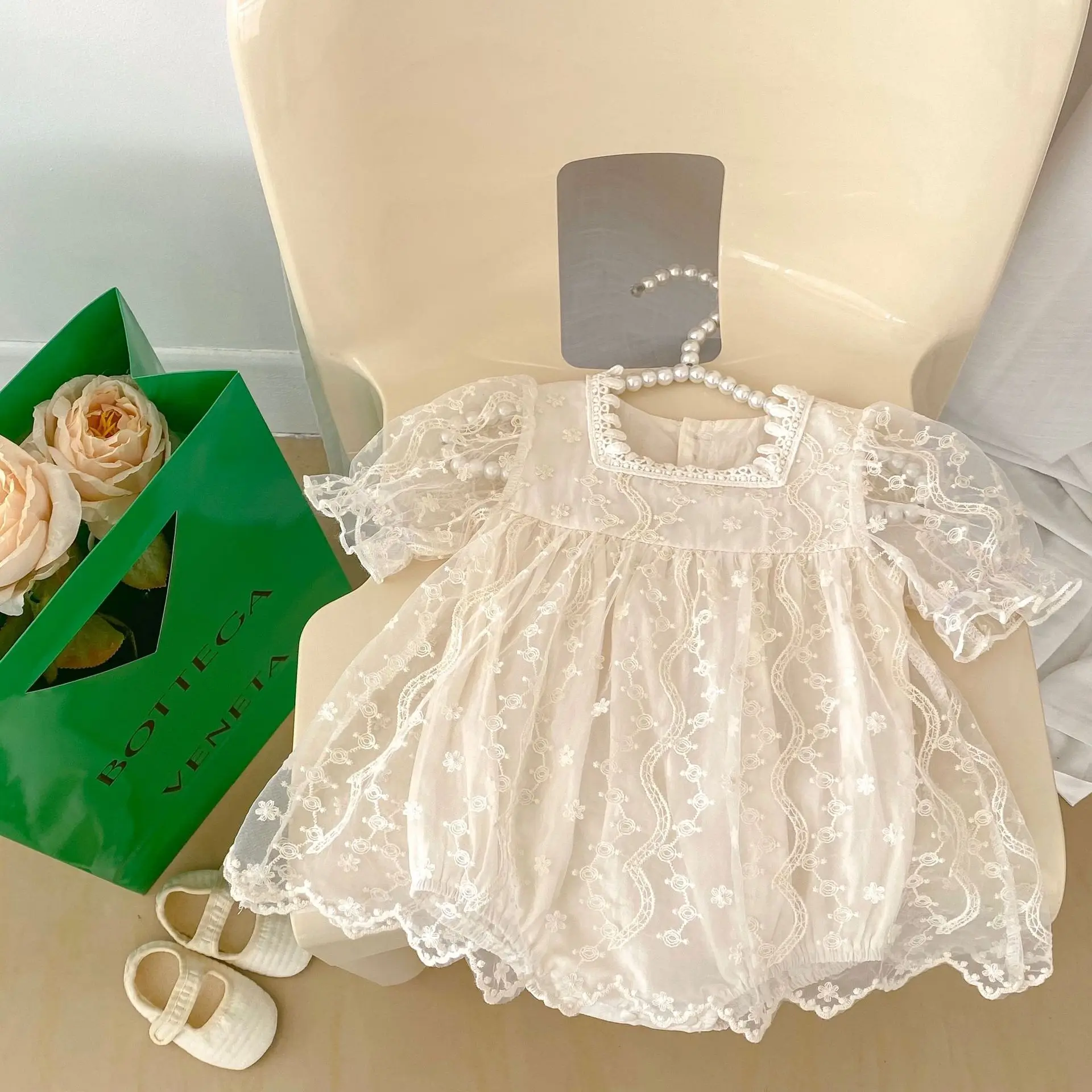 2026 Cute Boutique Newborn Girls Princess Dress Short Sleeve Flower Bodysuit Baby Summer Rompers