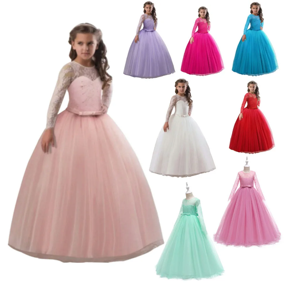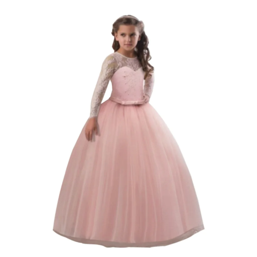 Party Kids Latest Children Boutique Clothes Girls Princess Lace Night Long Sleeve Dress Designs with Best Service and Low Price